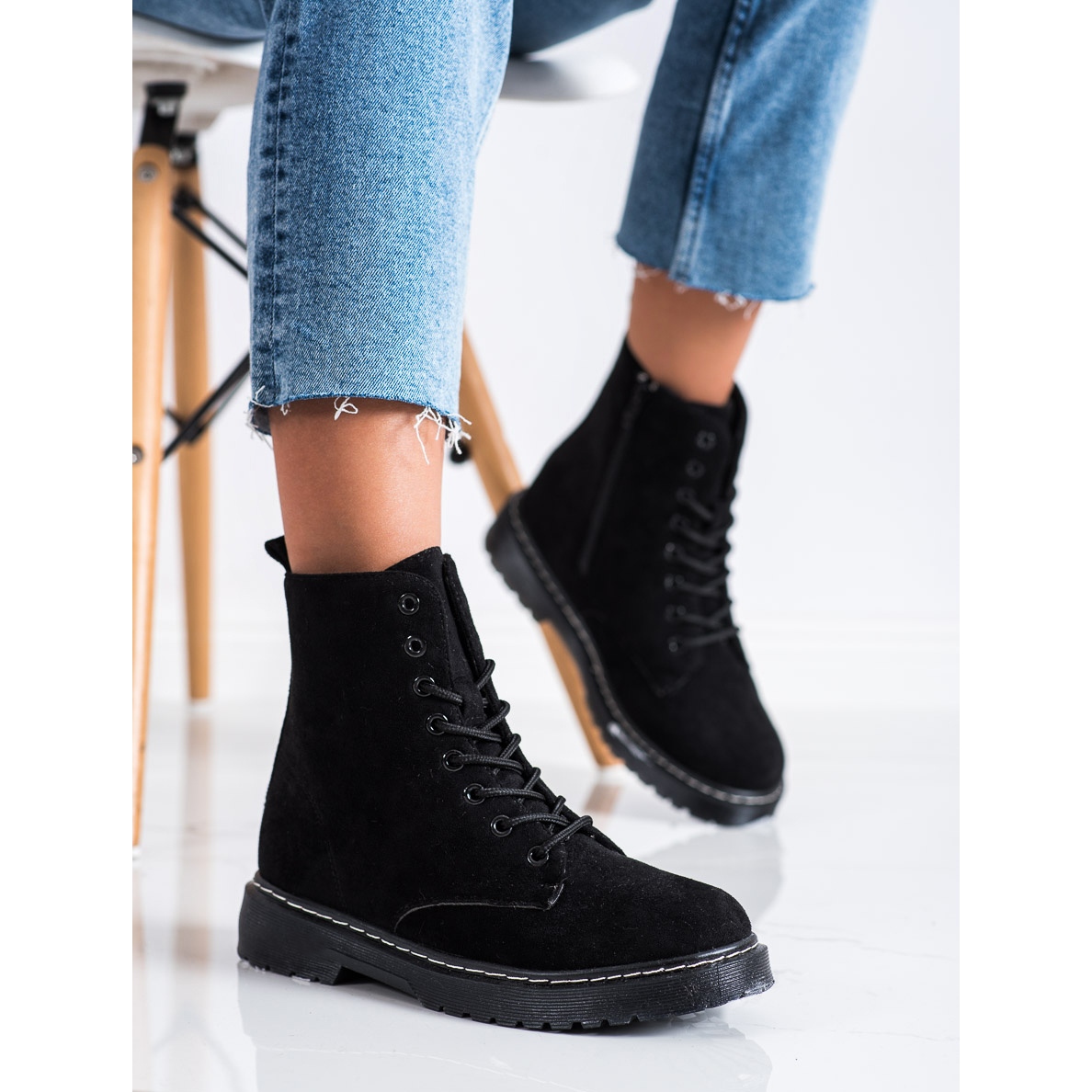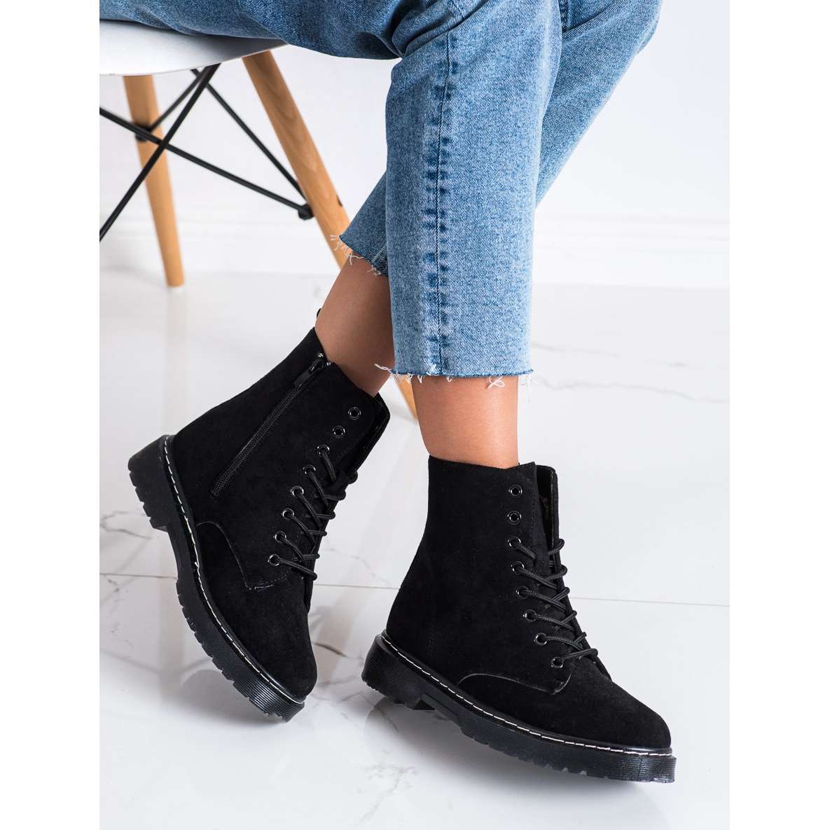 SHELOVET Suede Trappers With Insulation v černé barvě jsou perfektní volbou pro nadcházející sezónu podzim/zima. Tyto stylové kotníkové boty kombinují pohodlí a elegantní vzhled, díky čemuž jsou perfektním doplňkem každého neformálního outfitu.