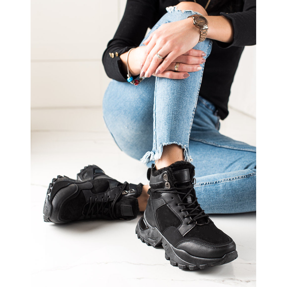 Podrobnosti: TRENDI Teplé šněrovací kozačky černý