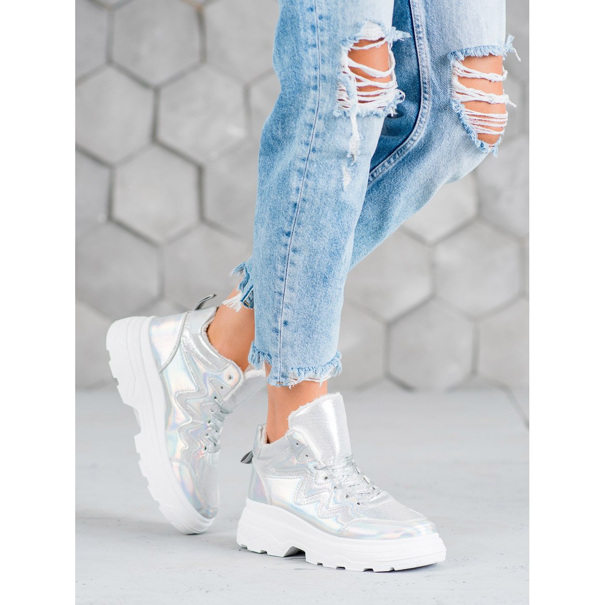 Objevte pohodlí a styl s izolovanými teniskami Seastar v elegantním šedém odstínu. Tato dámská sportovní obuv sahá až ke kotníku, díky čemuž se skvěle hodí k nejrůznějším podzimním a zimním outfitům. Jejich jedinečný design je obohacen o stříbrné vsadky a ozdobné stříbrné tkaničky, které přitahují pozornost a dodávají charakter.