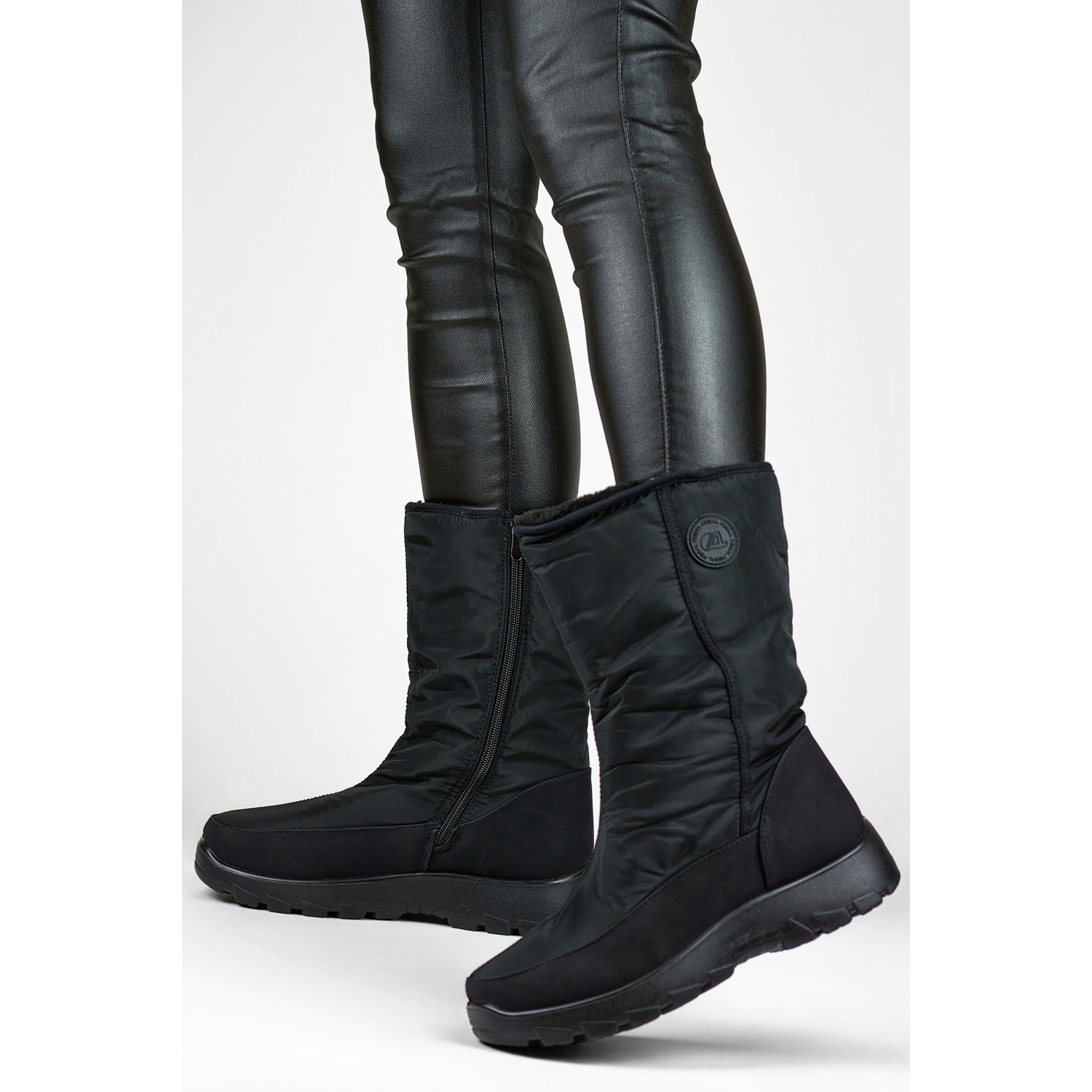 Klasické, černé ženské sněhové boty určené pro pohodlí a ochranu před chladem. Vyrobeno z odolných syntetických materiálů, izolovaných ekologickou kožešinou uvnitř, ideální pro chladné dny - do města a pro procházky.
