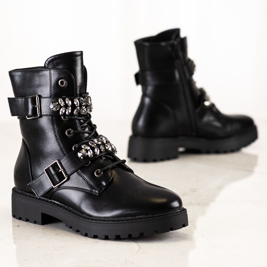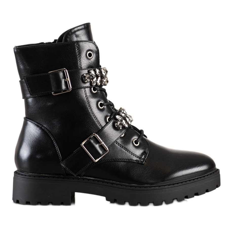 Boty vyrobené z vysoce kvalitní imitace kůže se vyznačují estetickými detaily, jako jsou ozdobné přezky a krystaly, které jim dodávají jedinečné kouzlo. Vyztužená uzavřená pata a izolace udrží vaše nohy v teple i v chladnějších dnech.