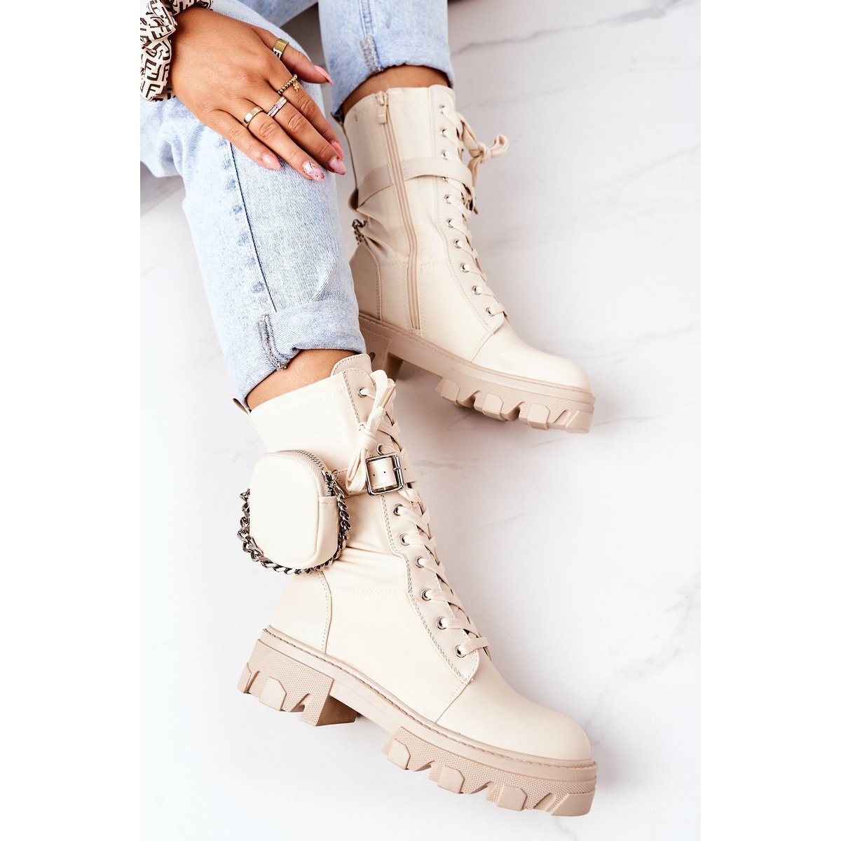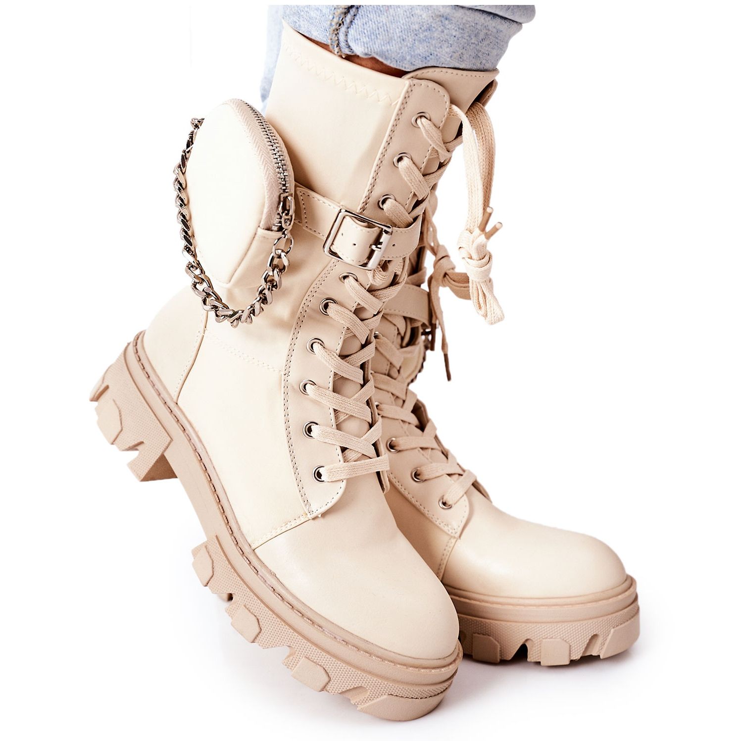 Díky plochému 4,5 cm podpatku a pohodlnému zapínání na tkaničky jsou tyto kozačky nejen funkční, ale také perfektně sedí na noze. Navíc přítomnost vějířovitého batohu a řetízku, které jsou trvale připevněny k botě, jim dodává charakteristický, módní akcent.