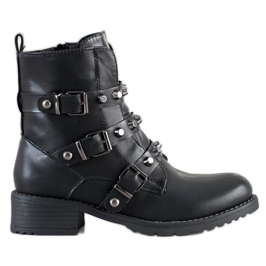 Teplé SHELOVET workery v černé barvě jsou perfektní nabídkou pro nadcházející sezónu podzim/zima. Tyto módní kotníkové boty vyrobené z vysoce kvalitní ekologické kůže kombinují ležérní a rockový styl a dokonale ladí s aktuálními trendy. Horní výška 14-15 cm a podpatek 4 cm zajišťují pohodlí a stabilitu a kulatá špička jim dodává charakteristický vzhled.