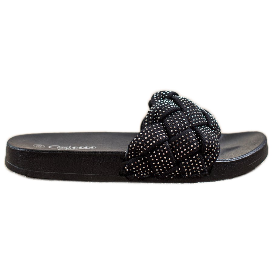 Groto Gogo Textilní pantofle s krystaly černý