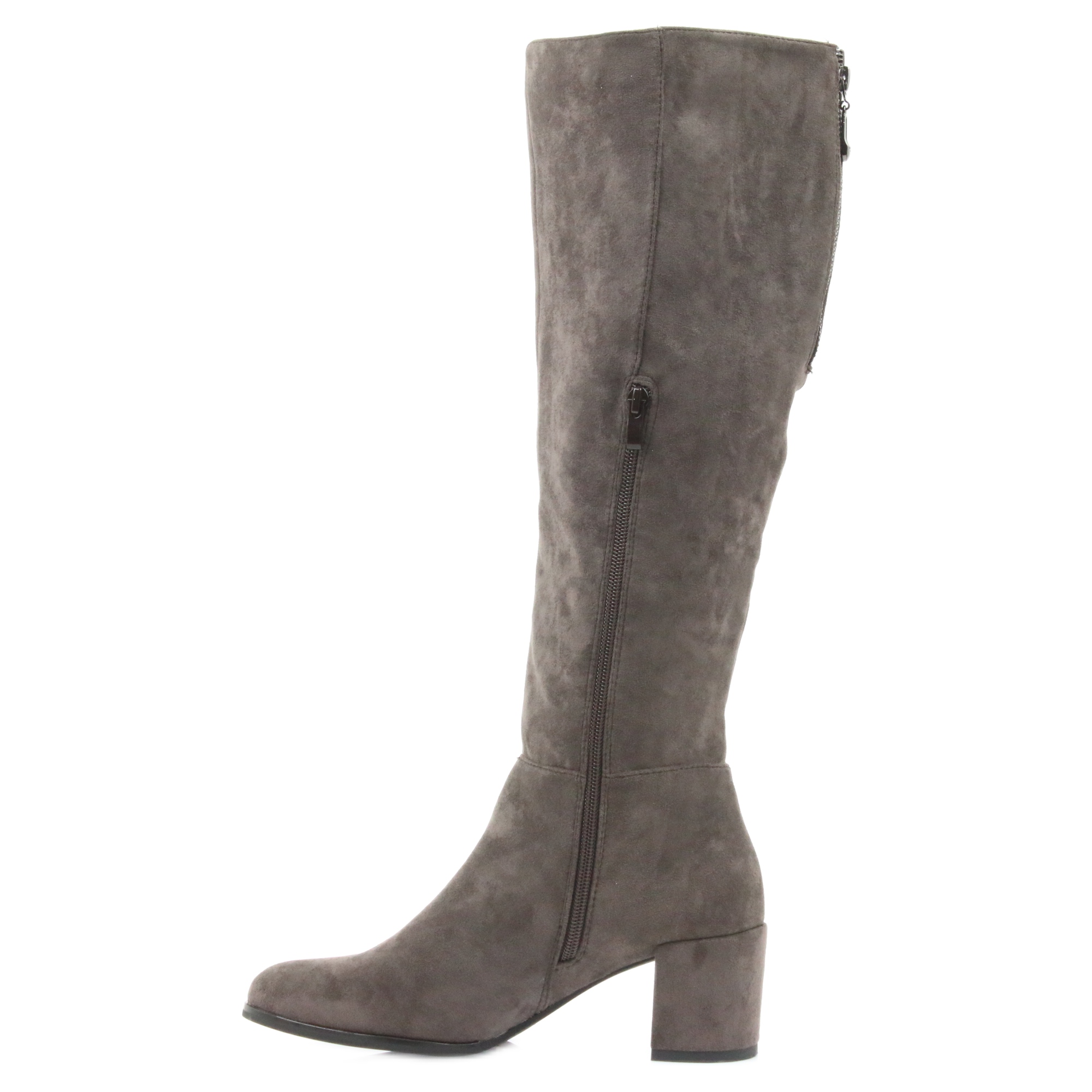 Díky vysokému svršku sahajícímu až ke kolenům a klasickému střihu jsou tyto boty ideální pro různé styly, od formálních po neformální. Nízký podpatek vysoký 6 cm zajišťuje stabilitu a pohodlí při dlouhém nošení. Další výhodou je praktický zip v horní části svršku, který umožňuje snadné nazouvání a vyzouvání bot a také zvětšuje jejich šířku.