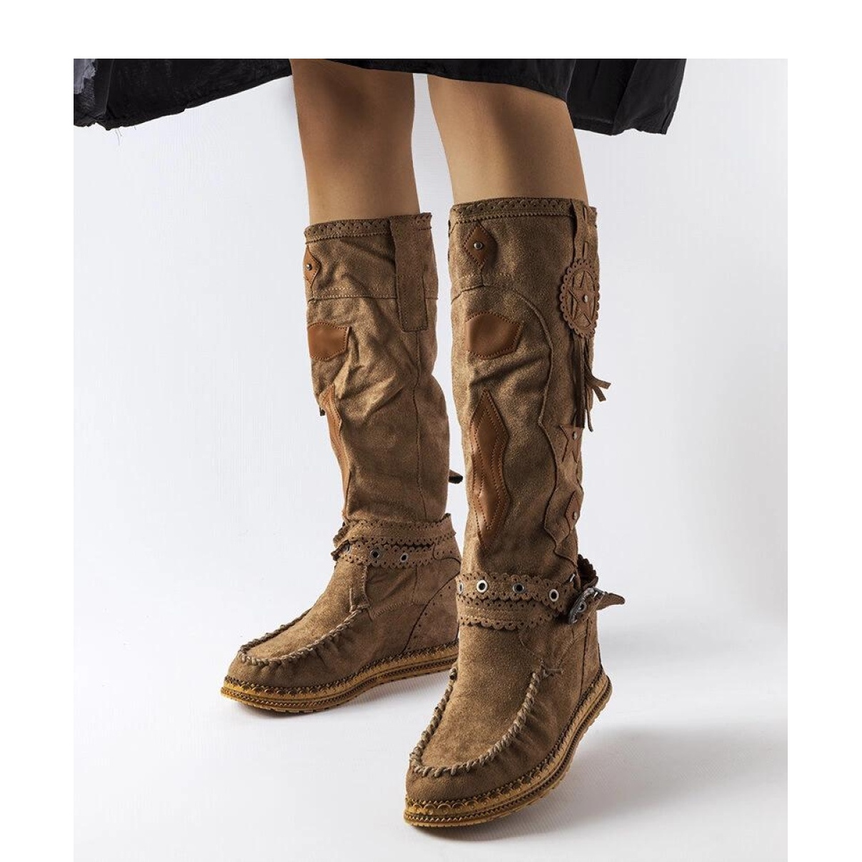 Solea Tmavě hnědé kozačky v boho stylu Putignano - Solea hnědý