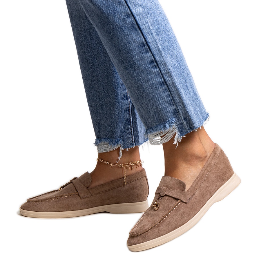 Inna marka Tmavě hnědé mokasíny s kovovým přívěskem od Fiorano béžový