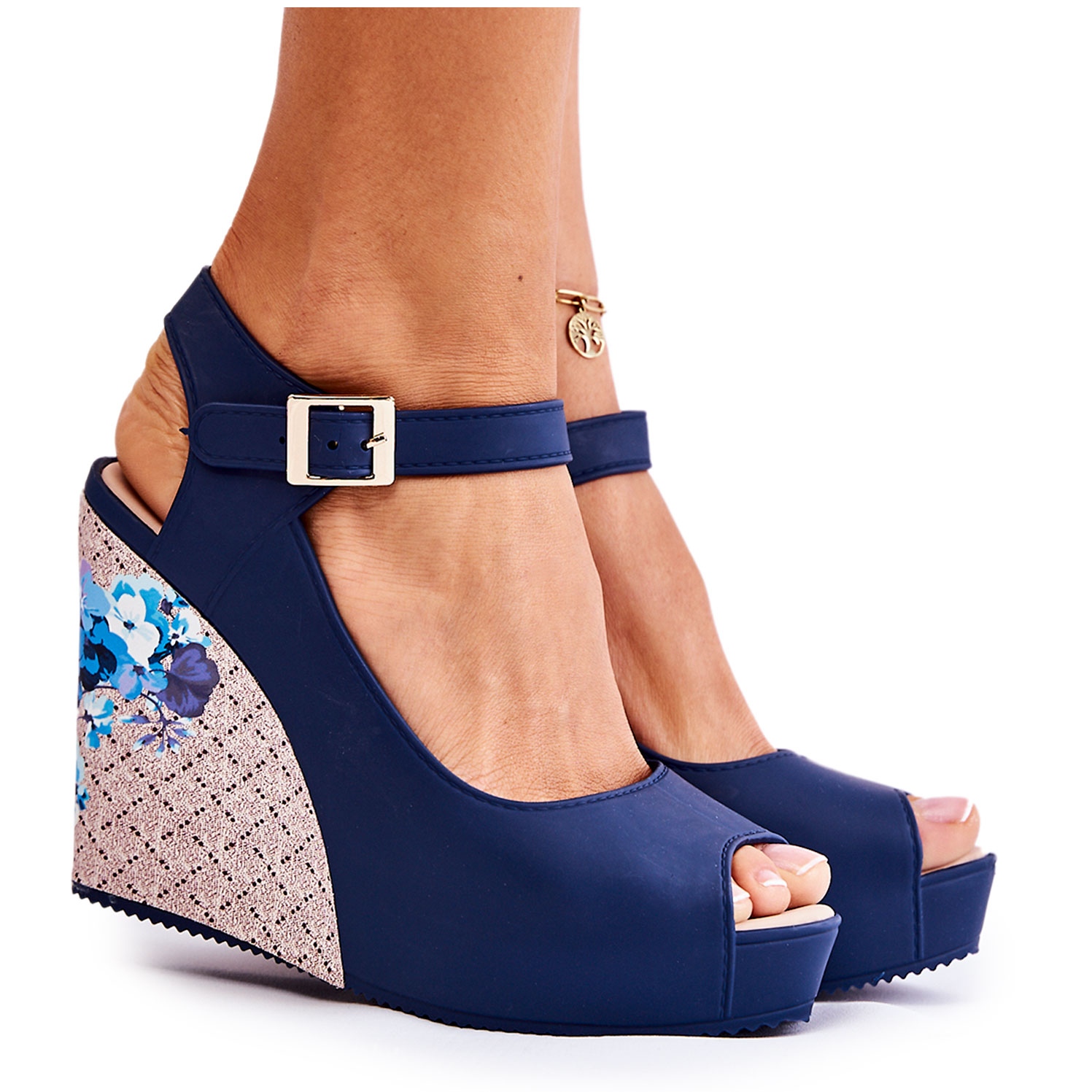 Podrobnosti: HV Tmavě modré dámské sandály na klínku Nemesis námořnická modrá