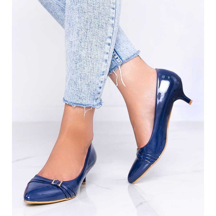 Jedná se o námořnické modré lodičky Aurora na nízkém podpatku, které budou dokonalým doplňkem každého elegantního stylingu. Vyrobeny z lakované ekologické kůže, spojují moderní design a komfort nošení. Jemná přezka zdobená zirkony dodává kouzlo a činí je jedinečnými.