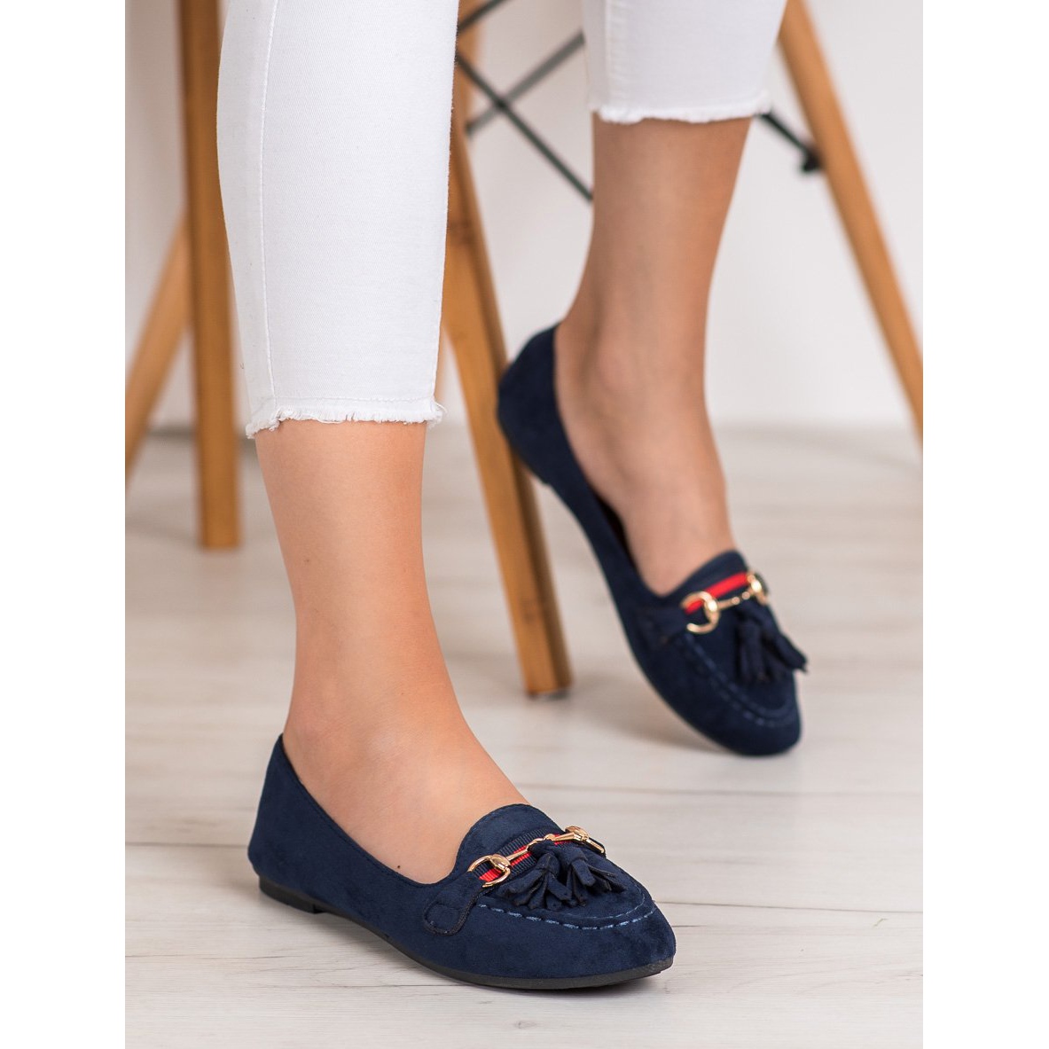 Námořnické modré mokasíny s třásněmi od značky Shelovet jsou perfektní volbou pro každou ženu, která chce spojit styl s pohodlím. Tyto boty vyrobené z vysoce kvalitní imitace semiše působí elegantně a zároveň ležérně, což z nich dělá perfektní doplněk ke každodennímu i formálnějšímu stylu.
