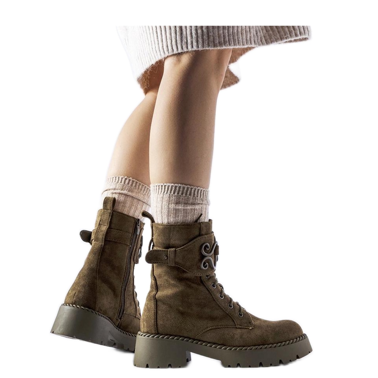 Tmavě zelená dekorativní pracovníci Eco-Zamsz jsou perfektní volbou pro ženy, které chtějí kombinovat módu s pohodlím. Tyto stylové boty, které jsou k dispozici ve sbírce podzim/zimy, se rozlišují nejen barvami, ale také pečlivým zpracováním vysoce kvalitní ekologické kůže v semišovém stylu. Jejich původní vzhled jistě přitahuje pozornost a přidá charakter každé zimní stylizace.