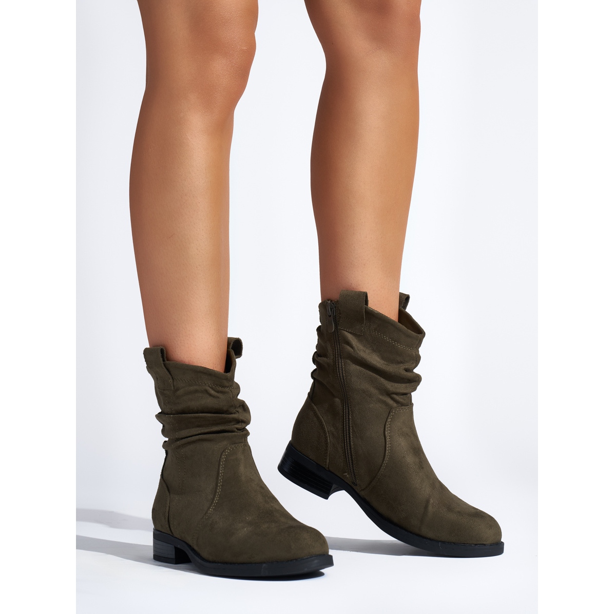Inna marka Tmavě zelené nařasené semišové kotníkové boty zelená
