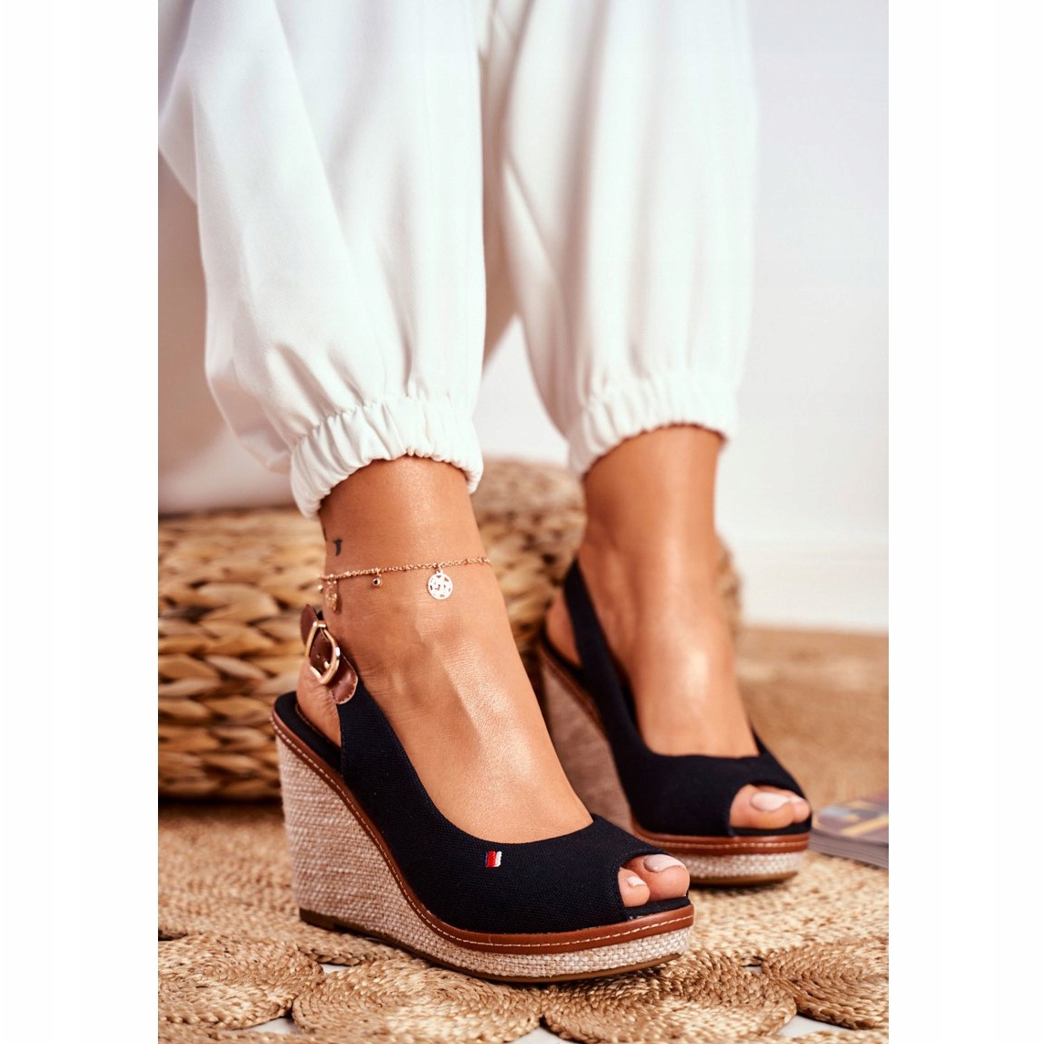 Objevte krásu a pohodlí s tkanými sandály na klínu PS1 v elegantní černé. Tyto jedinečné dámské sandály jsou perfektní volbou pro teplé dny, kombinují módní design s praktičností. 10,5 cm vysoký pletený klín dodává nejen styl, ale také zajišťuje pohodlí při chůzi, díky protiskluzové podrážce.