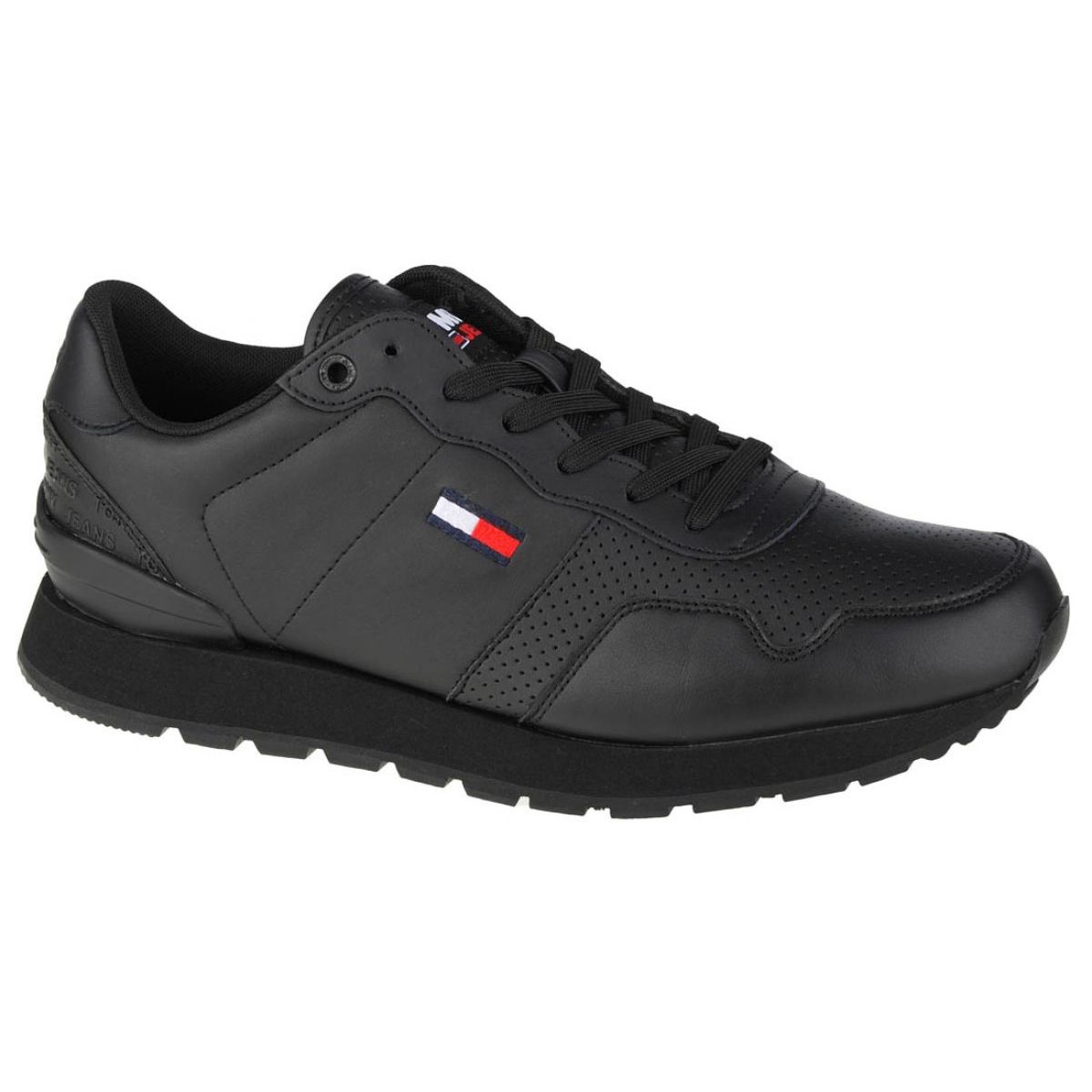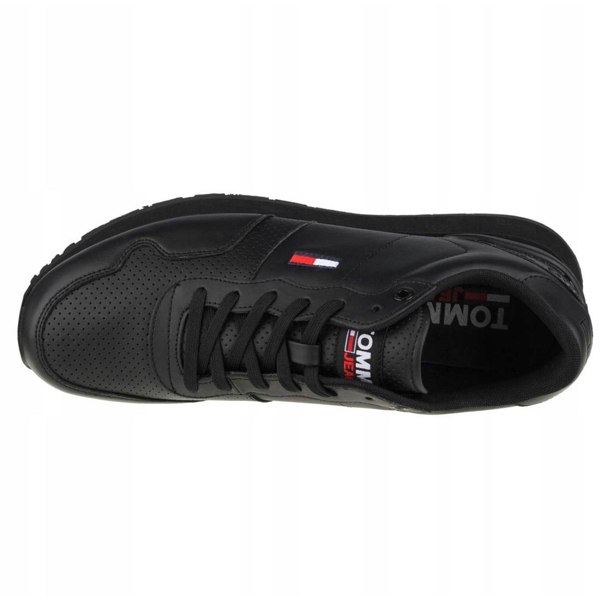 Boty Tommy Hilfiger Jeans Lifestyle Lea Runner M EM0EM00665-BDS v černé barvě jsou perfektní volbou pro muže, kteří oceňují kombinaci stylu a pohodlí. Tyto nízké sportovní boty vyrobené z vysoce kvalitní přírodní kůže potěší svou minimalistickou estetikou a univerzálností, díky čemuž se perfektně hodí pro každodenní styling.