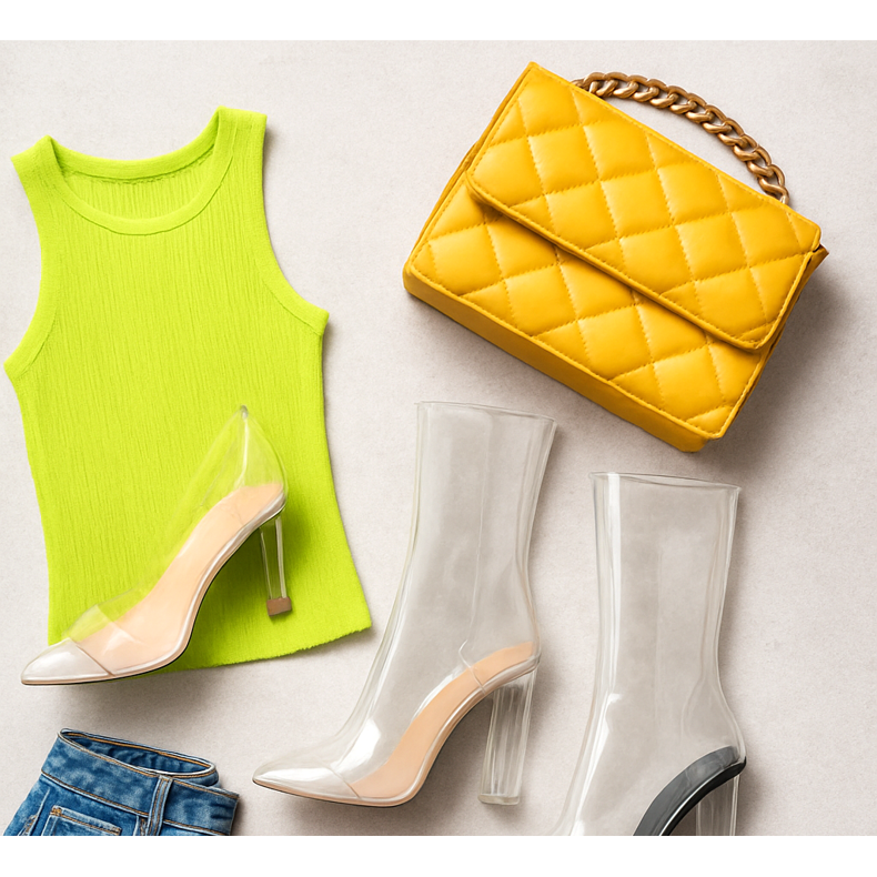 • • Neon Outfit + Transparentní paty: Rovnováha intenzity
