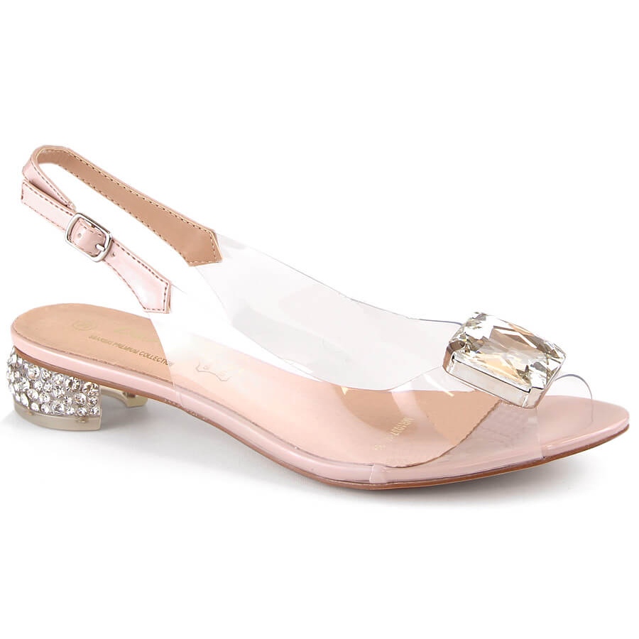 Podrobnosti: Transparentní sandály na plochém podpatku s růžovým kamenem S.Barski MR1037-10