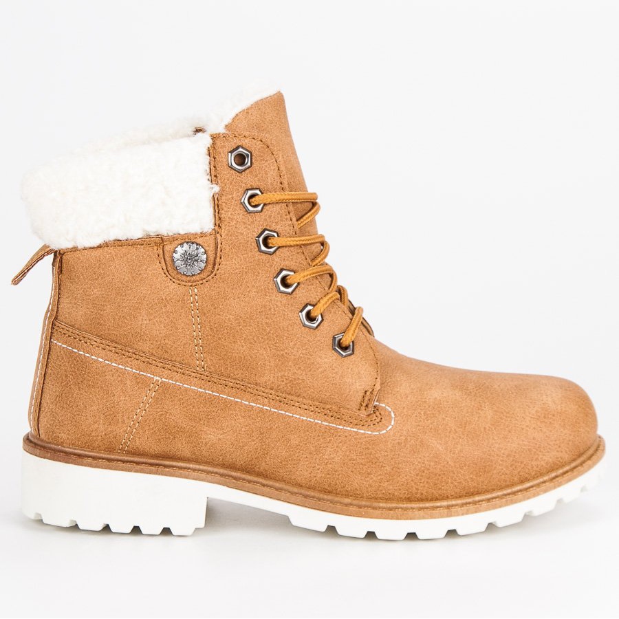 Hnědé boty Mkey s kožíškem jsou perfektní volbou pro mrazivé dny, kombinují módní design s funkčností. Díky jedinečné kožešinové izolaci jsou extrémně pohodlné, což je při nízkých teplotách nezbytné. Jsou vyrobeny z ekokůže velbloudí barvy a skvěle doplní váš každodenní styling, odpovídající aktuálním trendům podzimní/zimní sezóny.