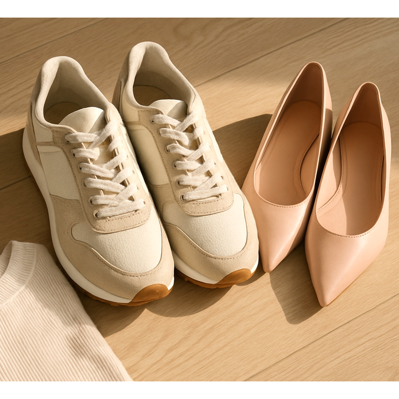 Jaro 2026 je také poklonou retro sportovnímu stylu. Tenisky jsou stále štíhlejší, inspirované fotbalovými a běžeckými modely z 80. a 90. let. Místo masivních „chunky sneakers“ volíme boty s nízkým profilem, se semišovými vsadkami a v živých, kontrastních barvách. Je to perfektní doplněk k ležérnímu stylu s džínami a trenčkotem.