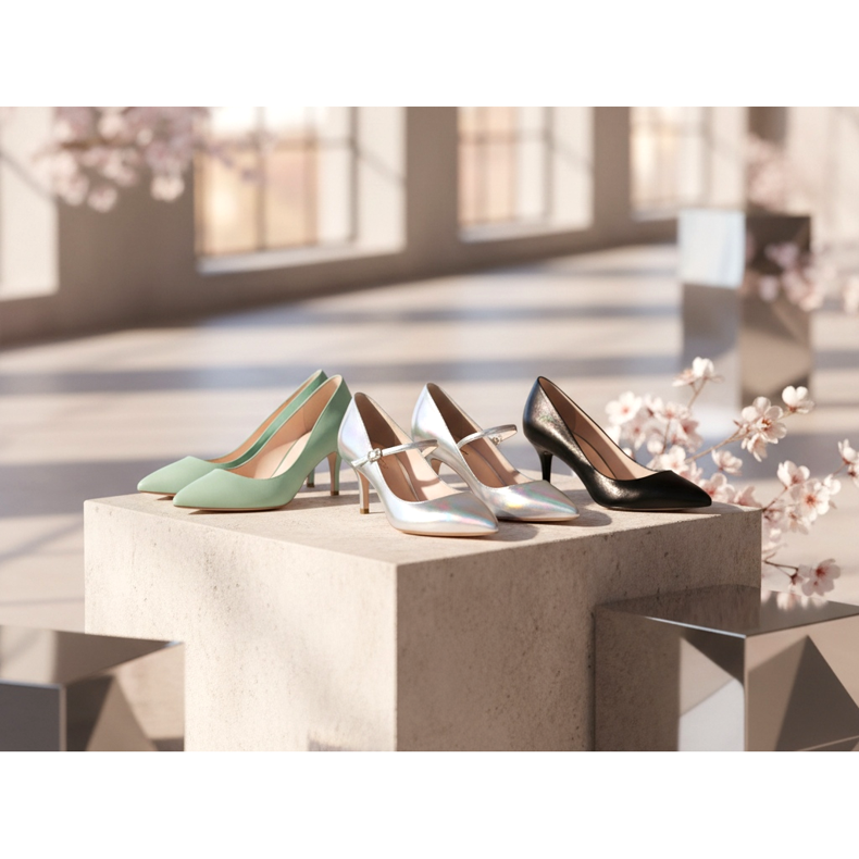 Jednou z nejznámějších novinek sezóny je návrat kotěcích podpatků. Tyto nízké, štíhlé podpatky, vysoké 3-5 cm, dokonale uvádějí rovnováhu mezi elegancí a pohodlím. Přehlídková mola ovládly modely se špičatou špičkou, v pastelových barvách a metalických variantách.