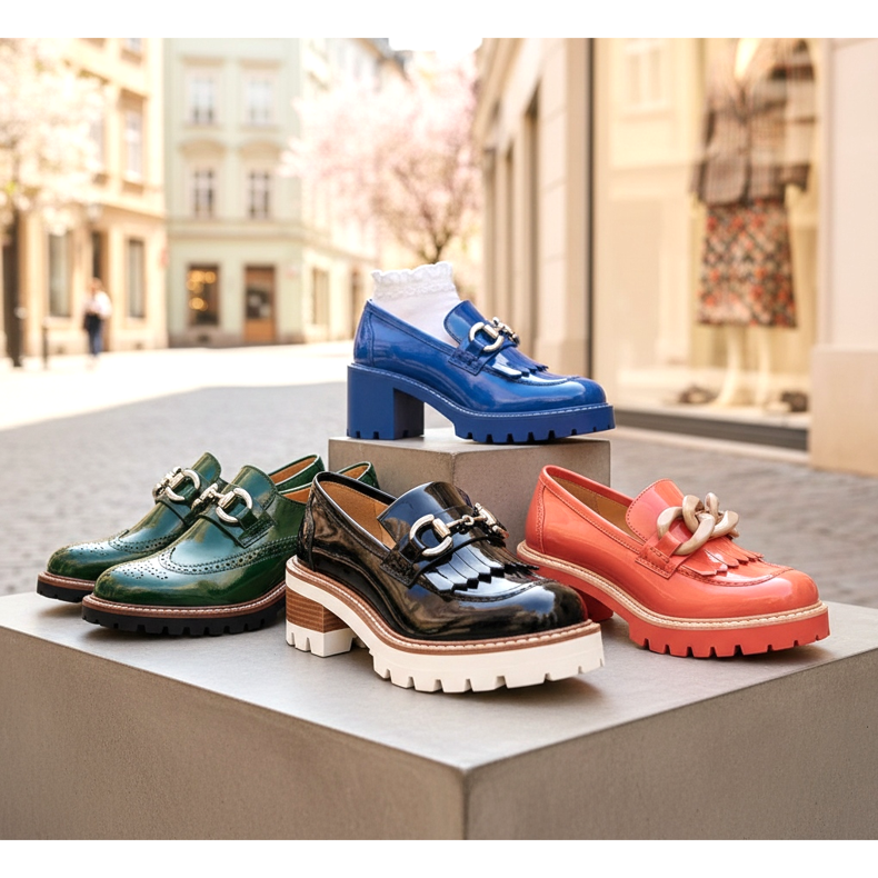 Mokasíny si udržují silnou pozici v trendech obuvi roku 2026. V této sezóně dominují modely s trochu avantgardnějším charakterem - mokasíny s tlustou kontrastní podrážkou, modely s manžetami a zdobením na špičce, ale i lakované varianty ve výrazných barvách, jako je chrpově modrá, lahvově zelená nebo korálová.