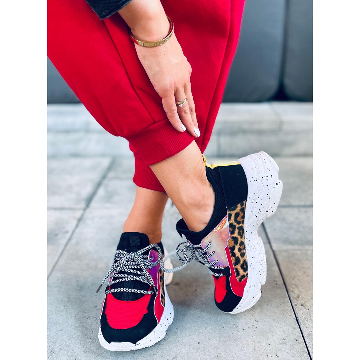 Objevte nejnovější trend ve sportovní módě se sportovní obuví Agnes Red! Tyto dámské tenisky s masivní podrážkou jsou dokonalou kombinací pohodlí a jedinečného stylu. Pokud hledáte obuv, která dodá energii vašemu každodennímu stylingu, tento model s holografickými vsadkami a leopardím motivem splní vaše očekávání.