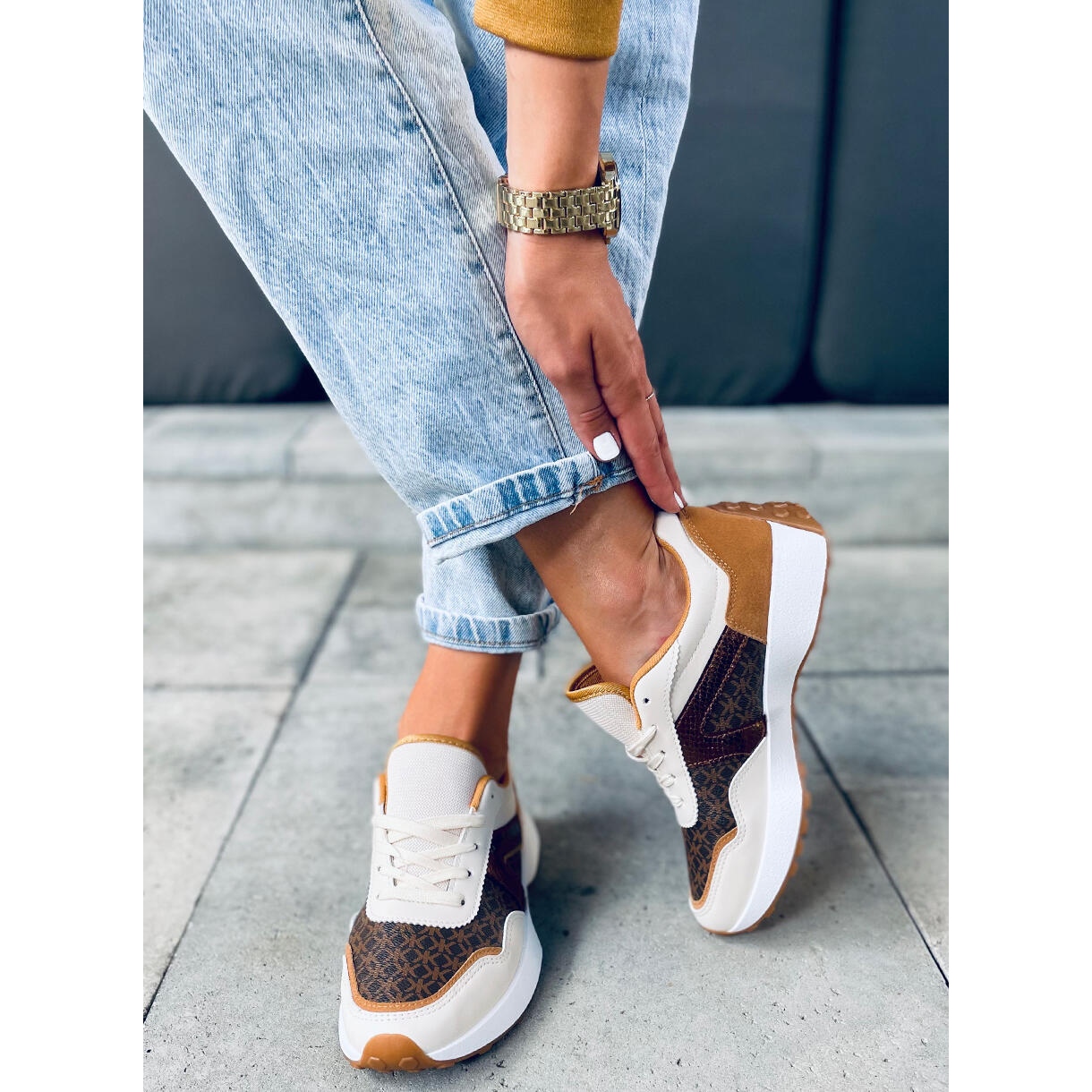 Zapínání na šněrování umožňuje přizpůsobit boty individuálním potřebám a kovové akcenty jim dodávají moderní vzhled. Díky kombinaci béžové, hnědé a vícebarevné barvy se boty skvěle hodí ke sportovním i ležérním outfitům.