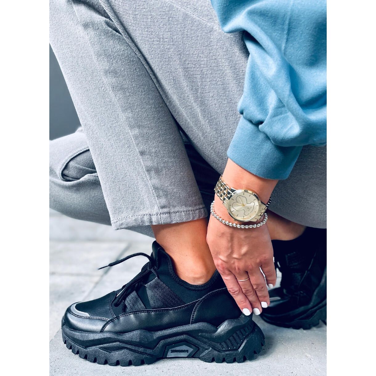 Tyto dámské sportovní boty s vysokou podrážkou perfektně zapadají do trendu „chunky sneakers“, kde tlustá pevná podrážka poskytuje nejen větší odpružení, ale také přidává centimetry na výšce, aniž byste se museli uchýlit k vysokým podpatkům. Kombinace ekologické kůže a neoprenové tkaniny nejen přitahuje pozornost, ale také poskytuje odolnost a flexibilitu, které jsou důležité při každodenních aktivitách.