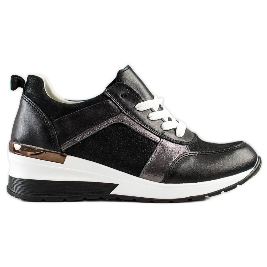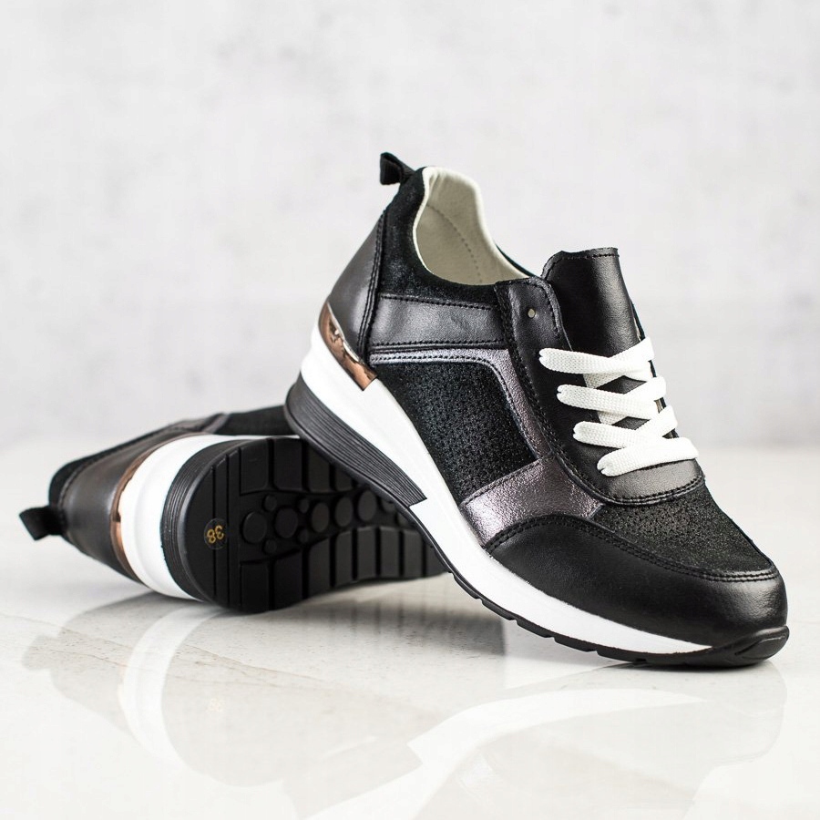 Třpytivé tenisky VINCEZA v černé barvě jsou perfektní volbou pro každou ženu, která chce vypadat jedinečně, aniž by obětovala pohodlí. Tyto neformální sportovní boty v sobě spojují eleganci a módu, díky čemuž jsou ideální jak pro každodenní nošení, tak pro volný čas.