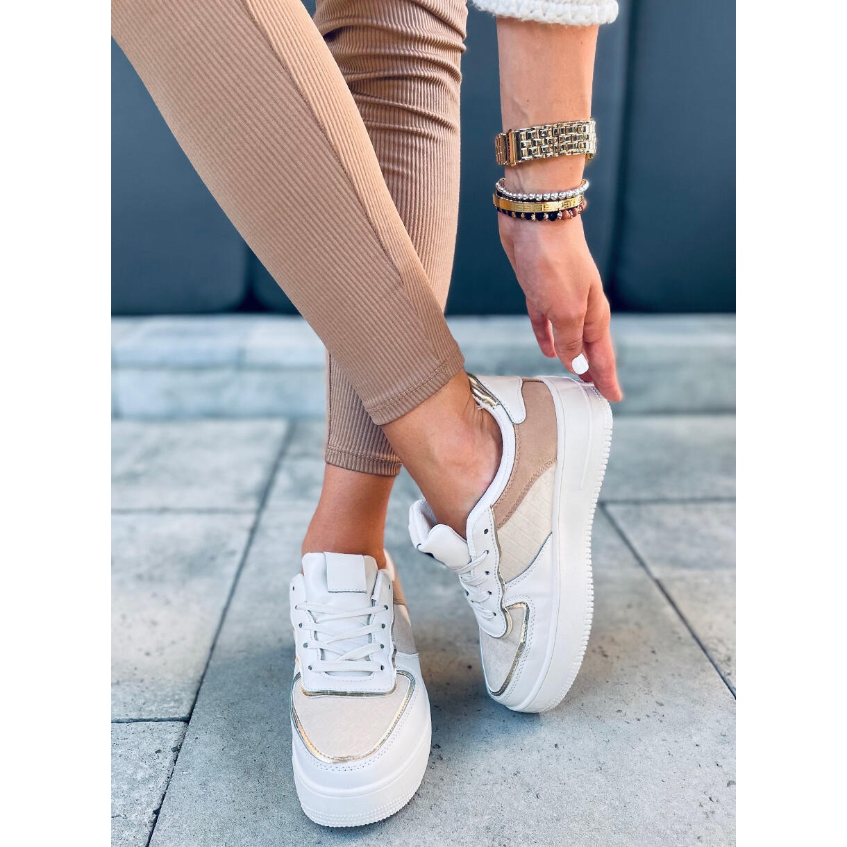 Díky plochému podpatku jsou tyto sportovní boty ideální pro každodenní nošení, hodí se k ležérním i elegantnějším outfitům. Díky béžové barvě jsou univerzální a snadno se hodí k různým stylům.