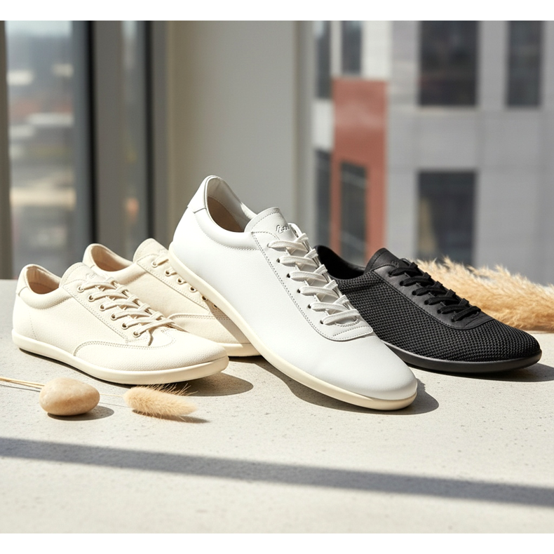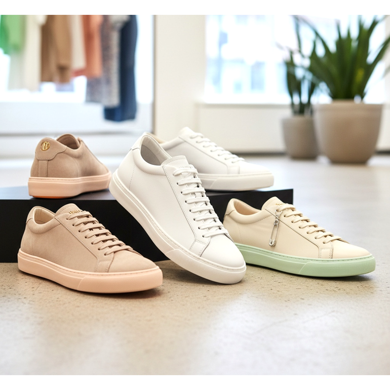 Pokud hledáte inspiraci, podívejte se na trendy: nejžádanější jsou v roce 2026 ultraštíhlé tenisky v bílé a krémové barvě, vyrobené z lícové kůže s minimem prošívání a ozdobných prvků. Bílá podrážka na pozadí v zápatí je naprosté minimum.