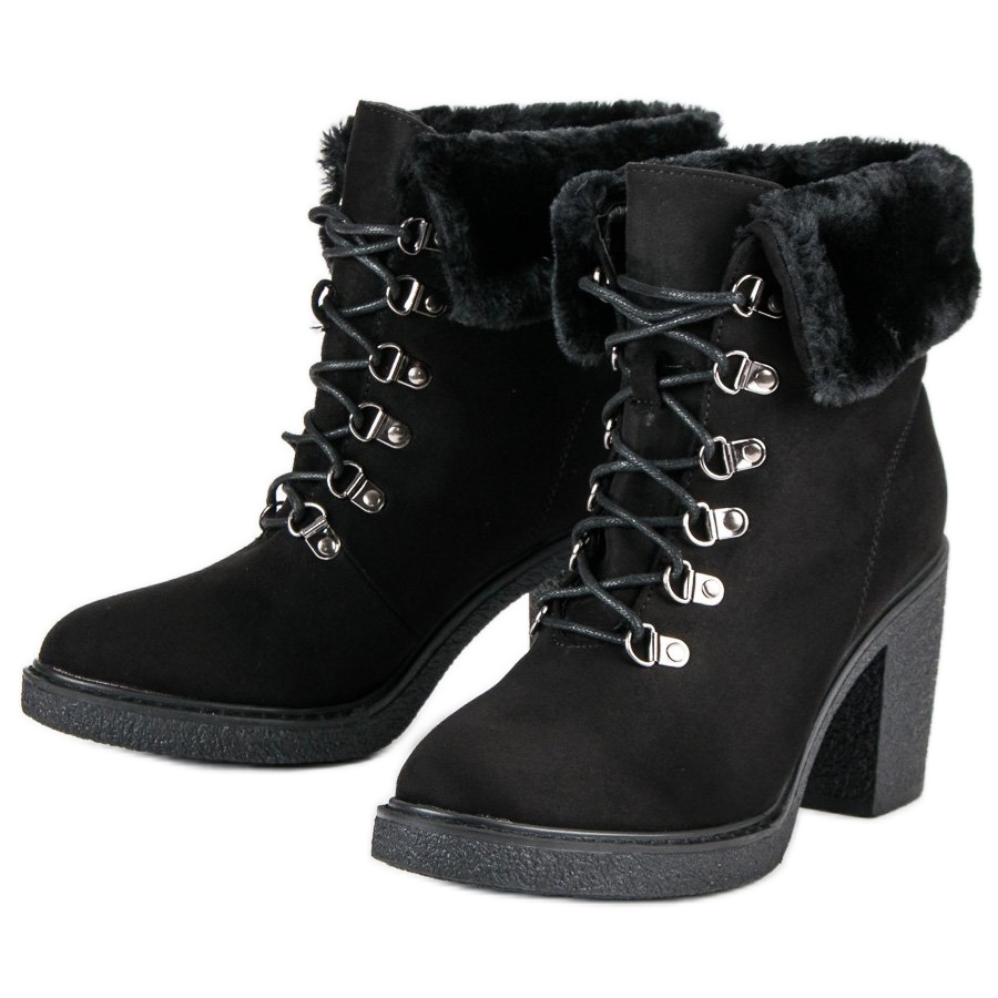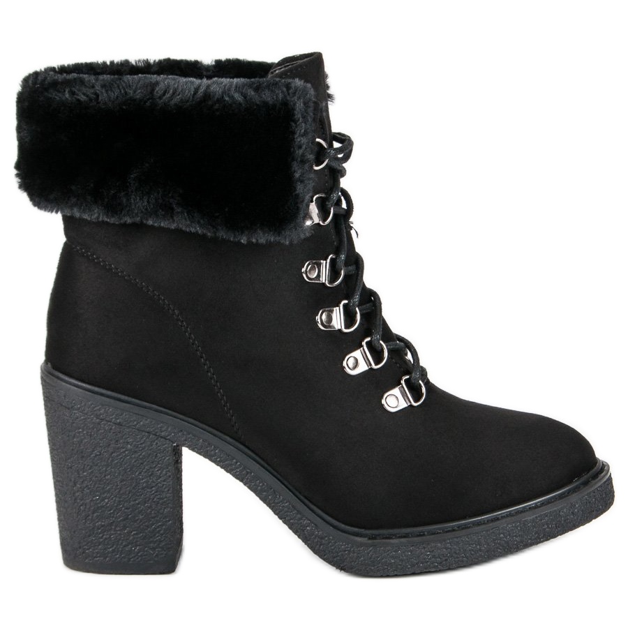 Objevte pohodlí a styl s kotníčkovými botami Juliet na vysokém podpatku v elegantní černé barvě. Tyto jedinečné kotníkové boty se zavazováním jsou dokonalou kombinací sportovního pohodlí a originálního designu, ideální pro každou situaci. Vyrobeny z vysoce kvalitní ekologické semišové kůže jsou nejen estetické, ale i funkční - dobře chrání před chladem a vlhkostí a odolnost proti poškrábání zajišťuje dlouhodobé používání.
