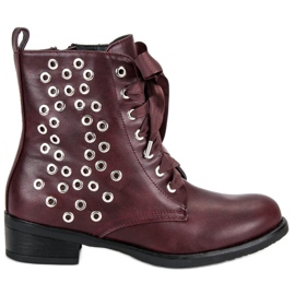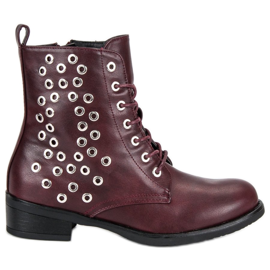 4 cm vysoký podpatek zajistí pohodlné nošení a zapínání na šněrování umožňuje přizpůsobení jakémukoli typu chodidla. Vínové dělnické kozačky perfektně zapadají do ležérního a přitom originálního stylu, díky čemuž se skvěle doplňují jak k džínům, tak k šatům.