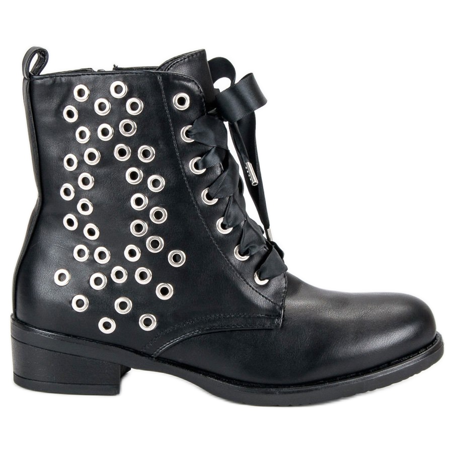 Hledáte obuv, která dodá charakter každému stylingu? Zde je ideální volba! Černé šněrovací pracovnice jsou perfektním doplňkem pro ženy, které chtějí zdůraznit svou individualitu a styl. Jejich elegantní svršek zdobený jedinečnými akcenty v podobě stříbrných kamínků na boku boty jim dodává dravý a zároveň módní vzhled.