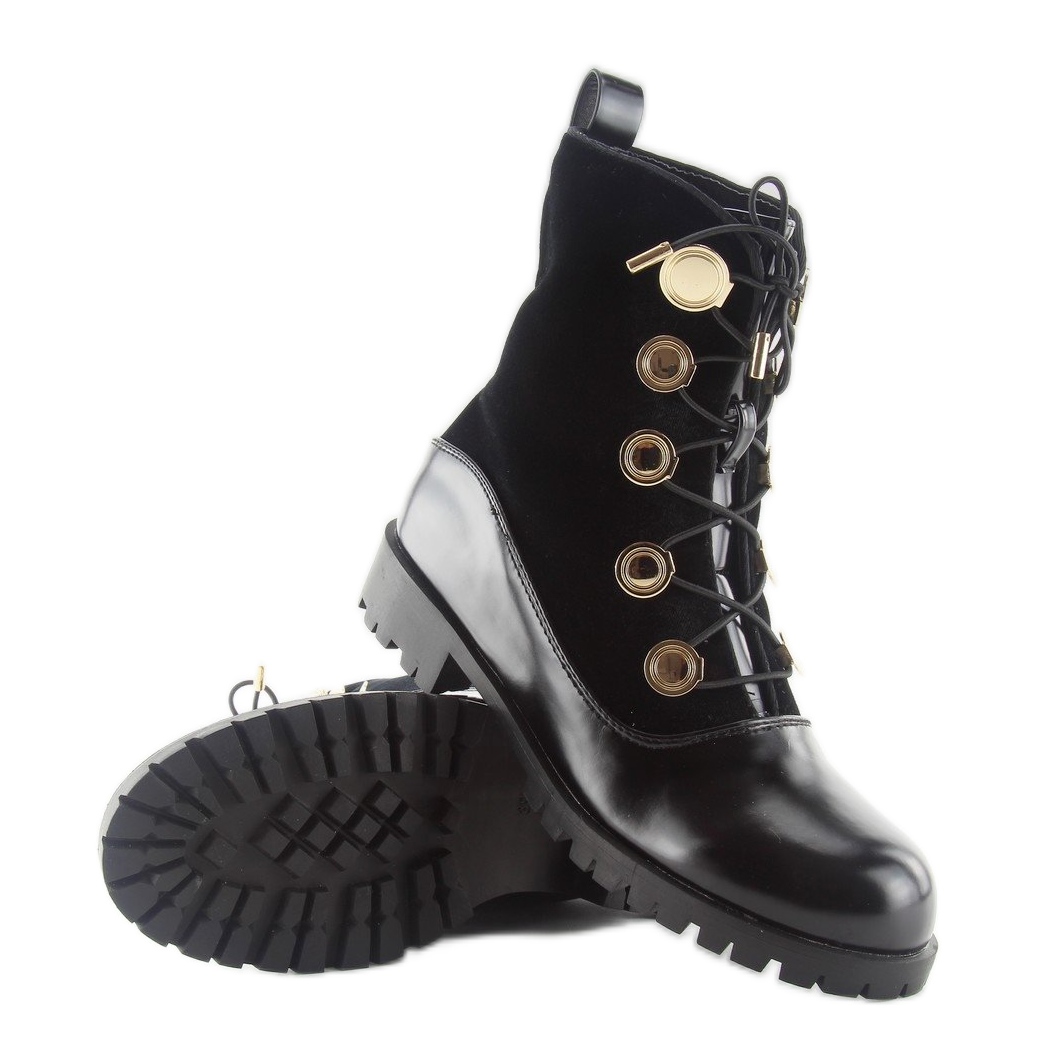 Nečekejte a přidejte trochu vojenského stylu do své kolekce obuvi s Velur Workers with Buttons R113p v černé barvě!