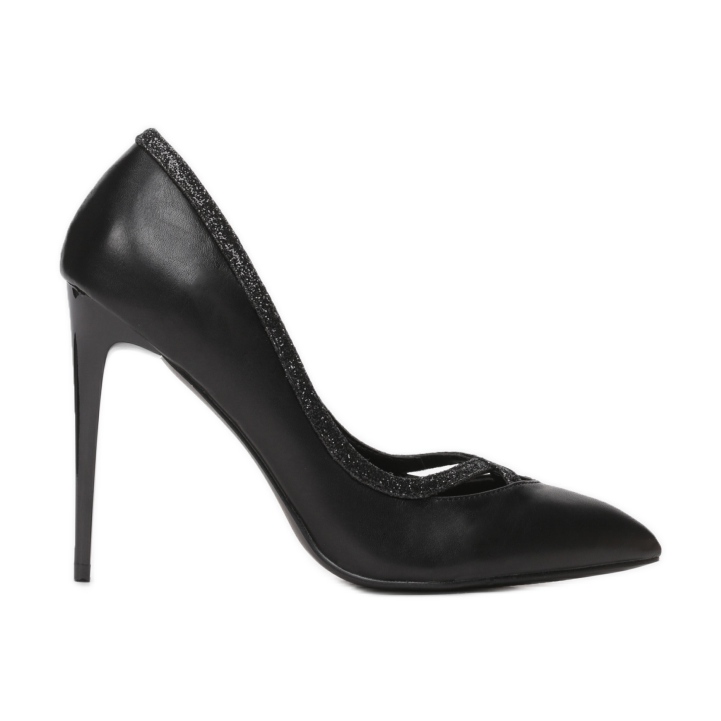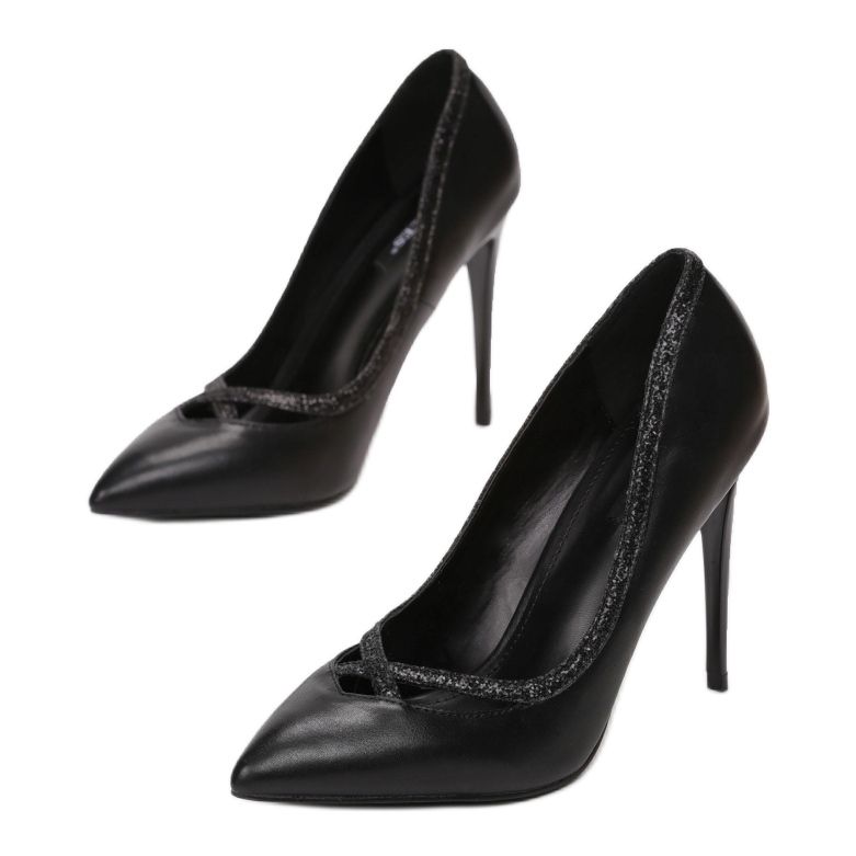 Svěráky IT1-1 Black se vyznačují klasickou špičatou špičkou, která opticky prodlužuje nohu a dodává šik. Díky výšce podpatku 10 cm lodičky dokonale zdůrazní postavu, dodají eleganci a ženskost. Díky nazouvacímu zapínání je obouvání a vyzouvání extrémně snadné.