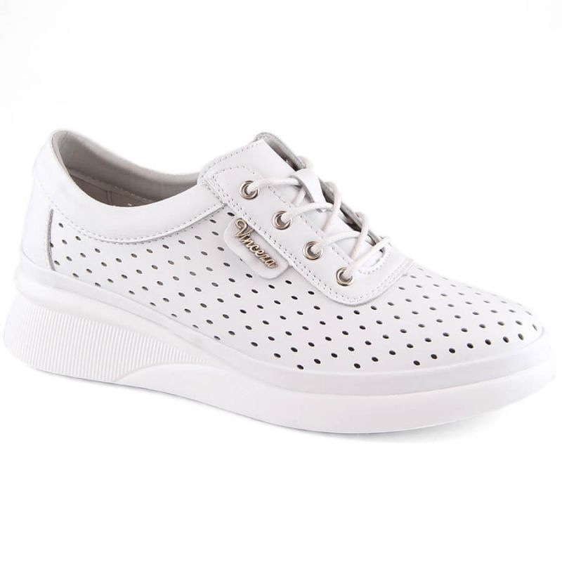 Vinceza Vinceza W JAN274 bílé prolamované kožené boty na klínku bílý