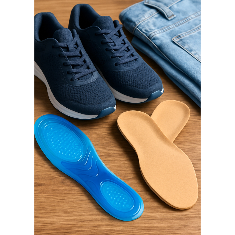 Gelové vložky poskytují maximální odpružení a pohodlí při dlouhém stání nebo chůzi. Vyrobeny ze silikonového nebo polyuretanového gelu, dokonale tlumí nárazy a snižují tlak na paty, klouby a páteř. Ideální pro osoby pracující ve stoje (prodavači, kuchaři, kadeřníci), sportovce, osoby s nadváhou a při dlouhých procházkách nebo prohlídkách památek. Dostupné v plné verzi nebo jako gelové podpatky. Vložky z paměťové pěny se přizpůsobí individuální anatomii chodidla a poskytují osobní pohodlí. Kombinují měkkost s dobrou podporou. Skvělé pro běžnou sportovní obuv a každodenní použití.
