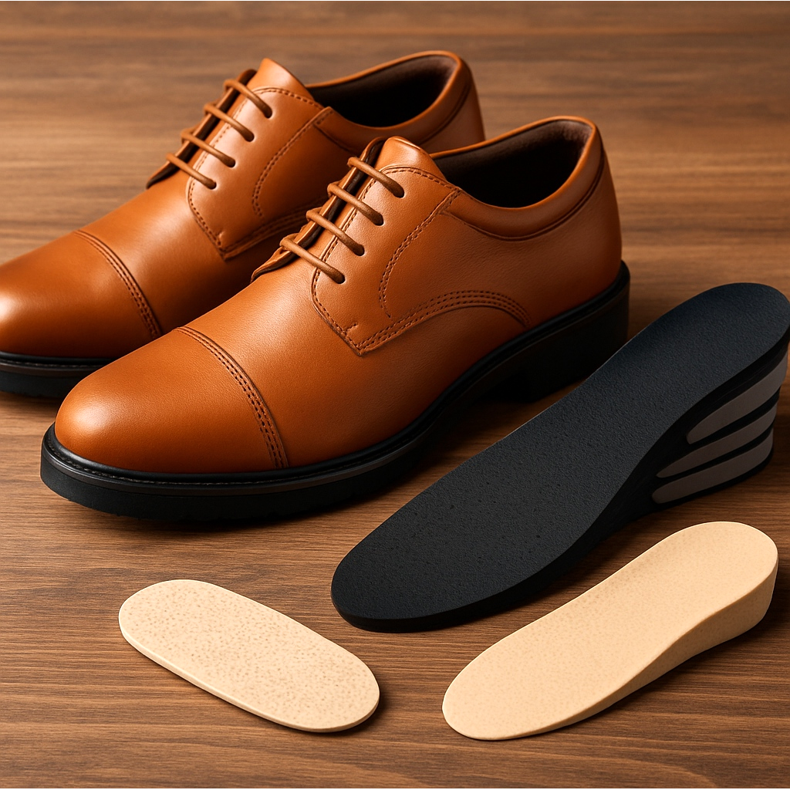 Výtahové vložky diskrétně přidávají 2 až 7 cm výšky, skryté uvnitř boty. Vyrobeno z lehké vícevrstvé pěny nebo silikonu. Obzvláště populární v Asii, stále více akceptován v Evropě. Je důležité volit ergonomické modely s adekvátní podporou klenby, abyste se vyhnuli nepohodlí. Opravné vložky na patě, které opravují nesrovnalosti v délce nohavic, dostupné v různých výškách (od 3 mm do několika cm). Pomáhají vyrovnat kyčle a snižují bolesti zad. Zejména při větších délkových rozdílech by je měl vybírat ortoped nebo fyzioterapeut.