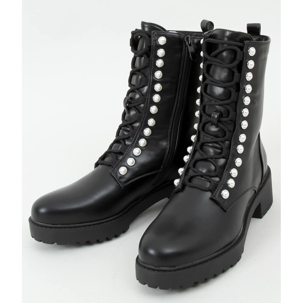 Podrobnosti: Vojenské boty s perlami Odrey Black černý