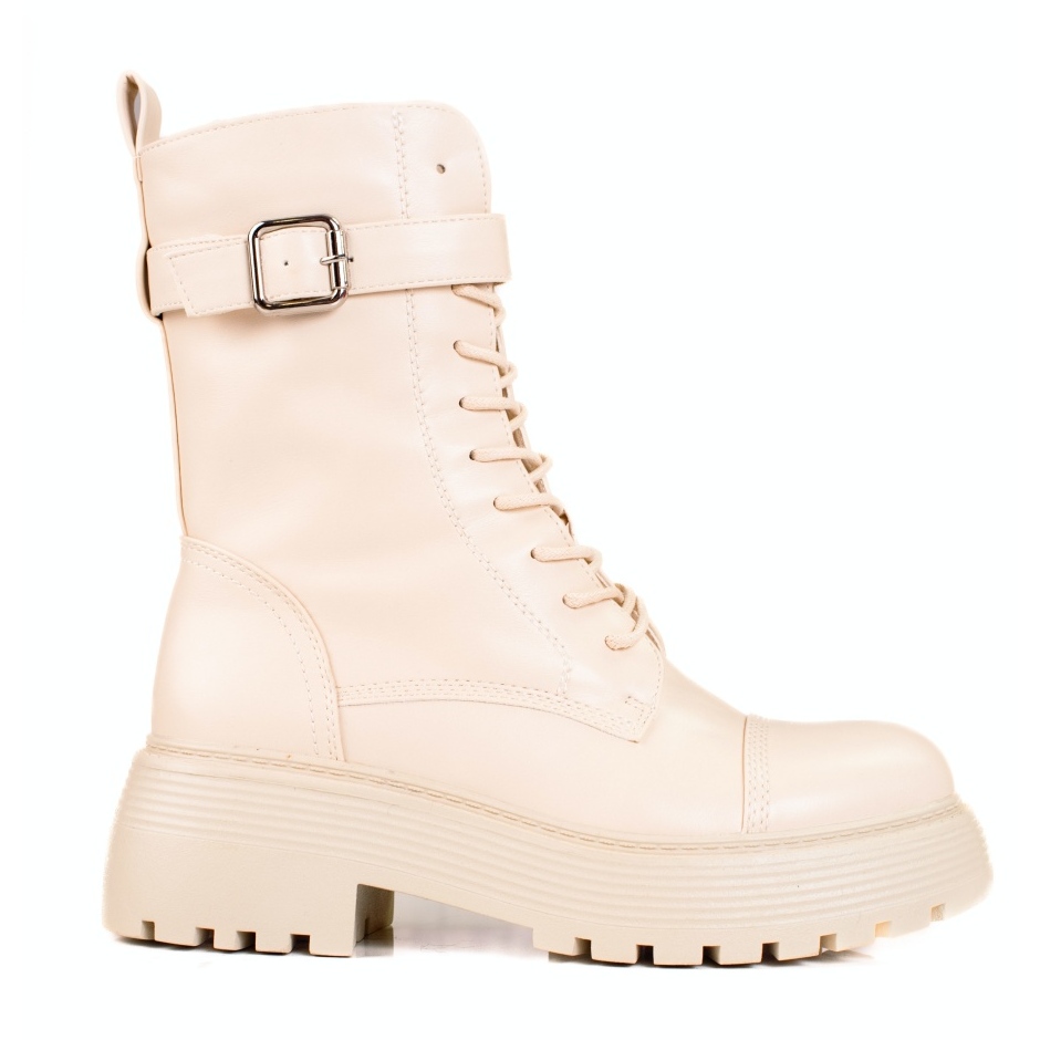 Podrobnosti: Vysoké, béžové dámské dělnické boty se tkaničkami béžový