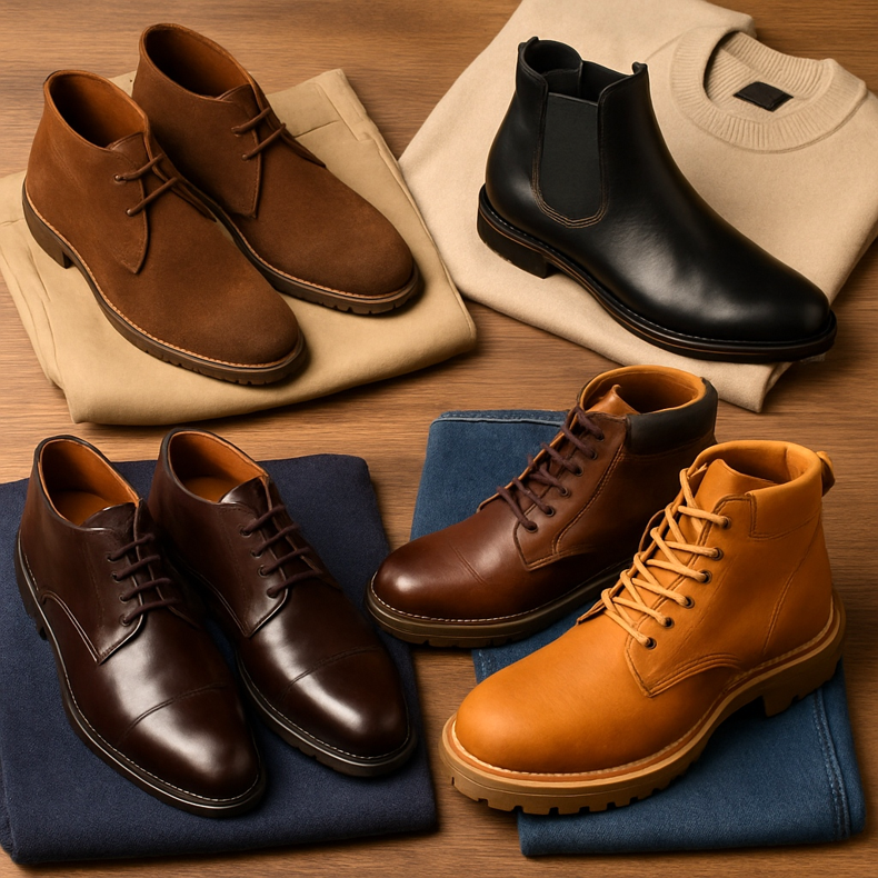 Kotníkové boty jsou kategorií, která zahrnuje různé styly: Chelsea boty, kotníkové boty, chukka boty, Chelsea boty. Hlavní znak: horní část dosahuje nad kotník (5-10 cm výše). Výhody: podpora hlezenního kloubu, ochrana proti chladu, univerzálnost (elegance + funkčnost), dobrý střih s dlouhými a ke kolenům dlouhými kalhotami.