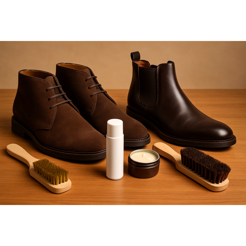 Krém nebo pasta v barvě bot, kartáč z koňských žíní, cedrové botníky po každém nošení.