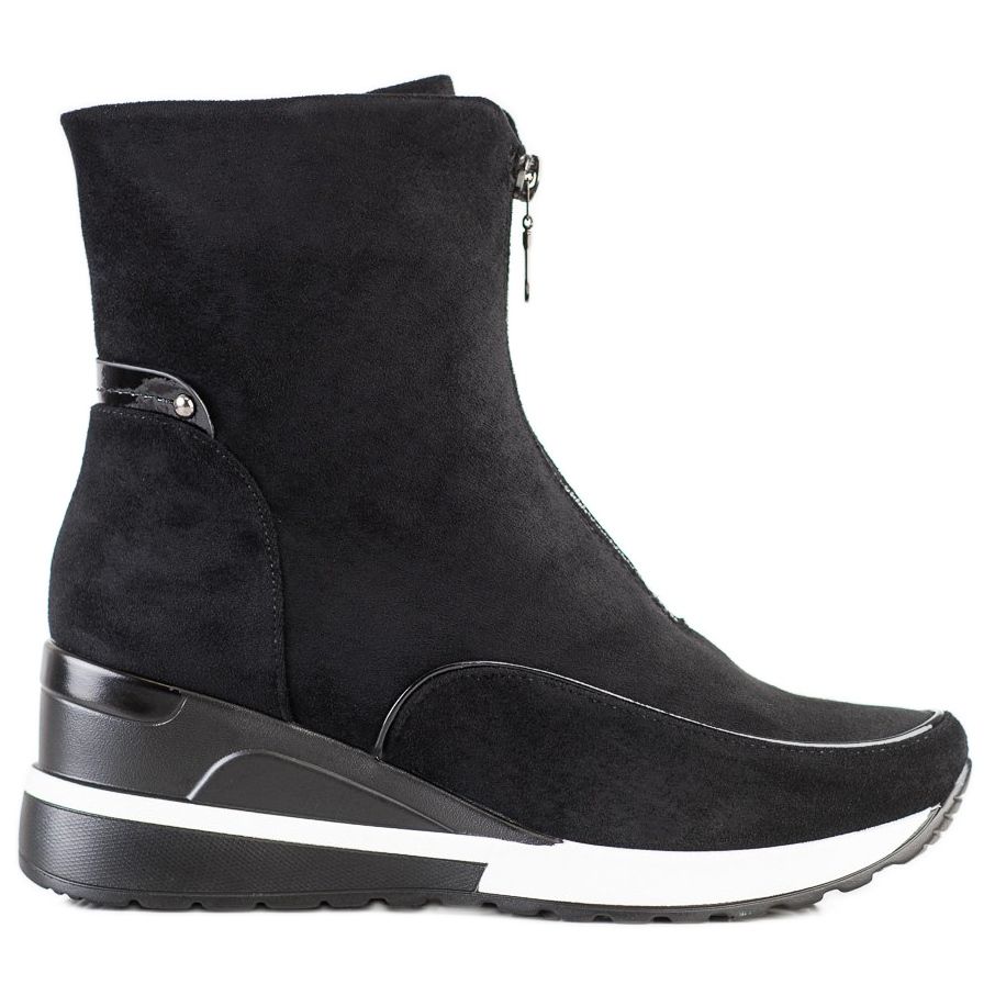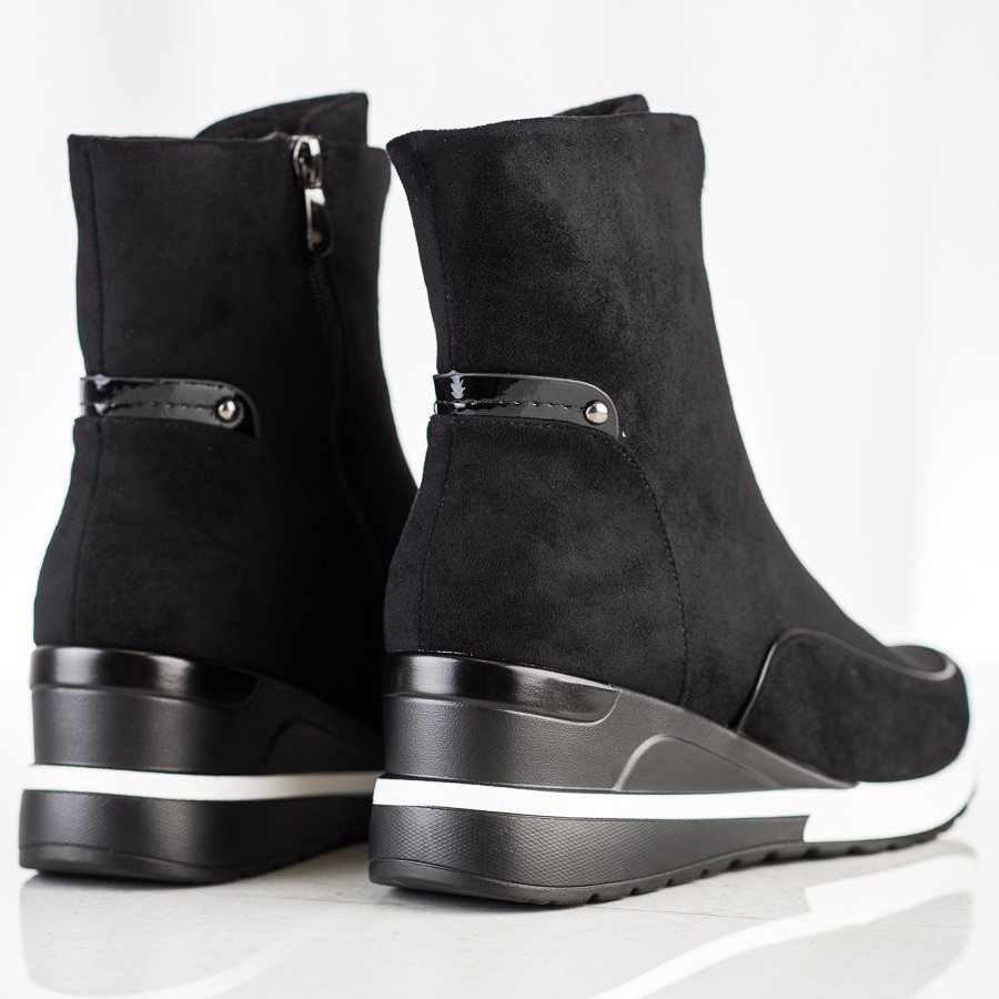 Objevte eleganci a pohodlí ve vysokých černých kotníkových botách VINCEZA, které kombinují ležérní styl s každodenní funkčností. Tyto dámské kotníkové boty jsou perfektní volbou pro chladné dny podzimní/zimní sezóny. Vyrobeny z vysoce kvalitní ekokůže v imitaci semiše vypadají mimořádně elegantně a zároveň jsou šetrné k životnímu prostředí.