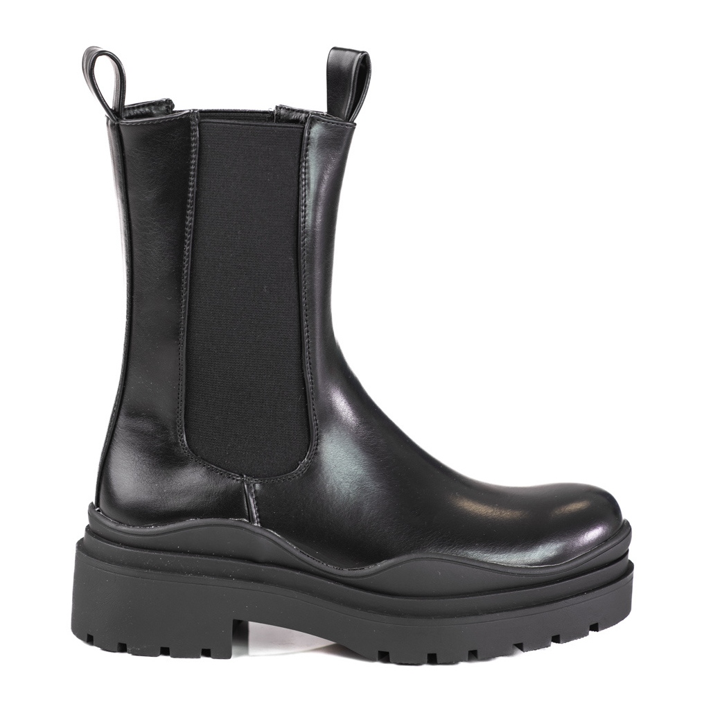 SHELOVET Vysoké dámské chelsea boty na silné platformě Shelovet černé barvy černá