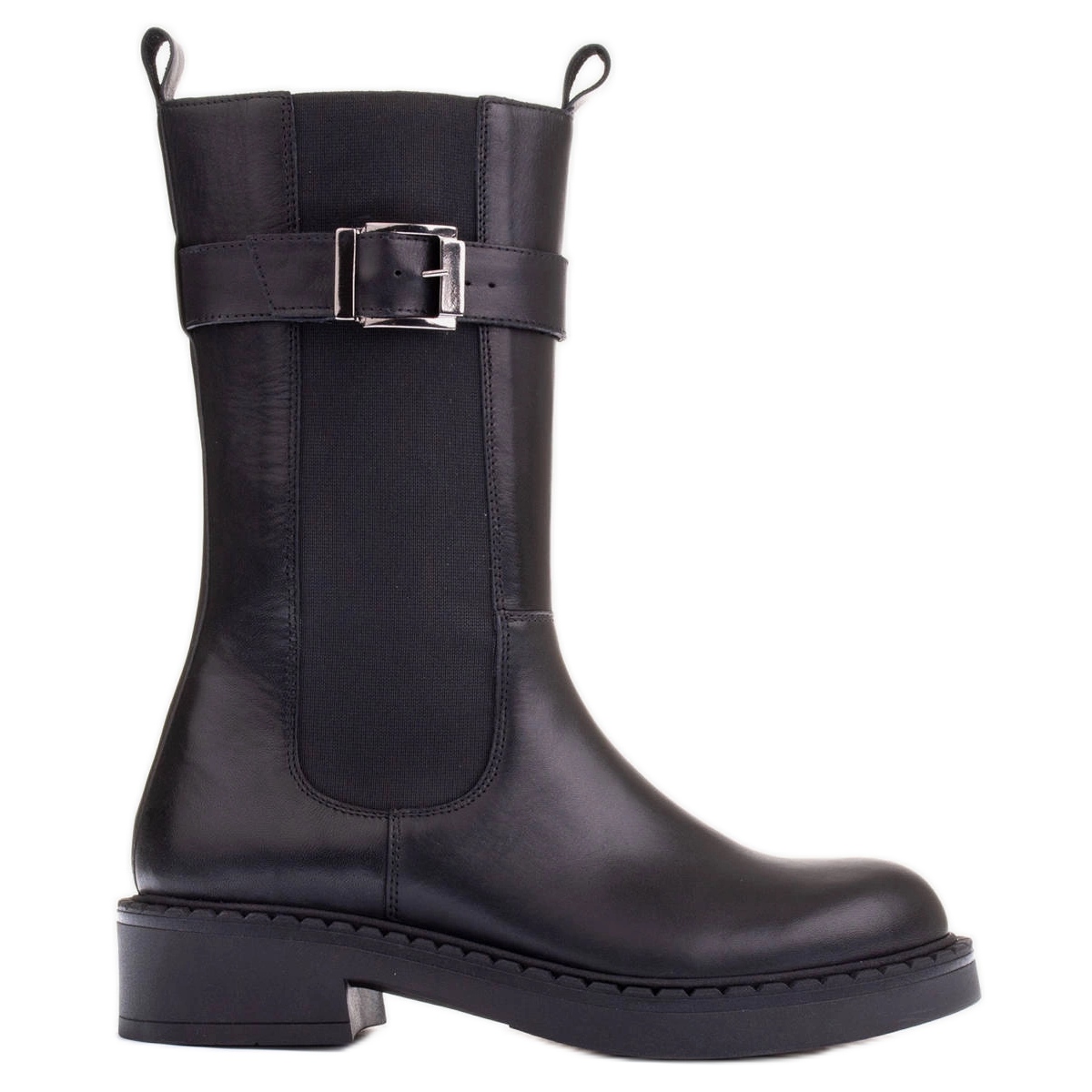 Marco Shoes Marco Shoes Vysoké kozačky s širokou gumou černá