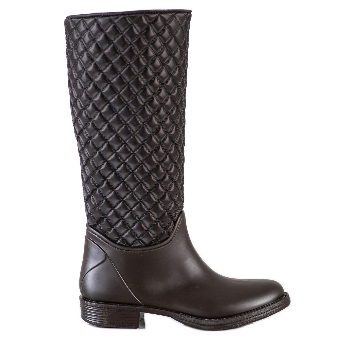 SHELOVET SHELOVET Vysoké, prošívané galoše hnědý