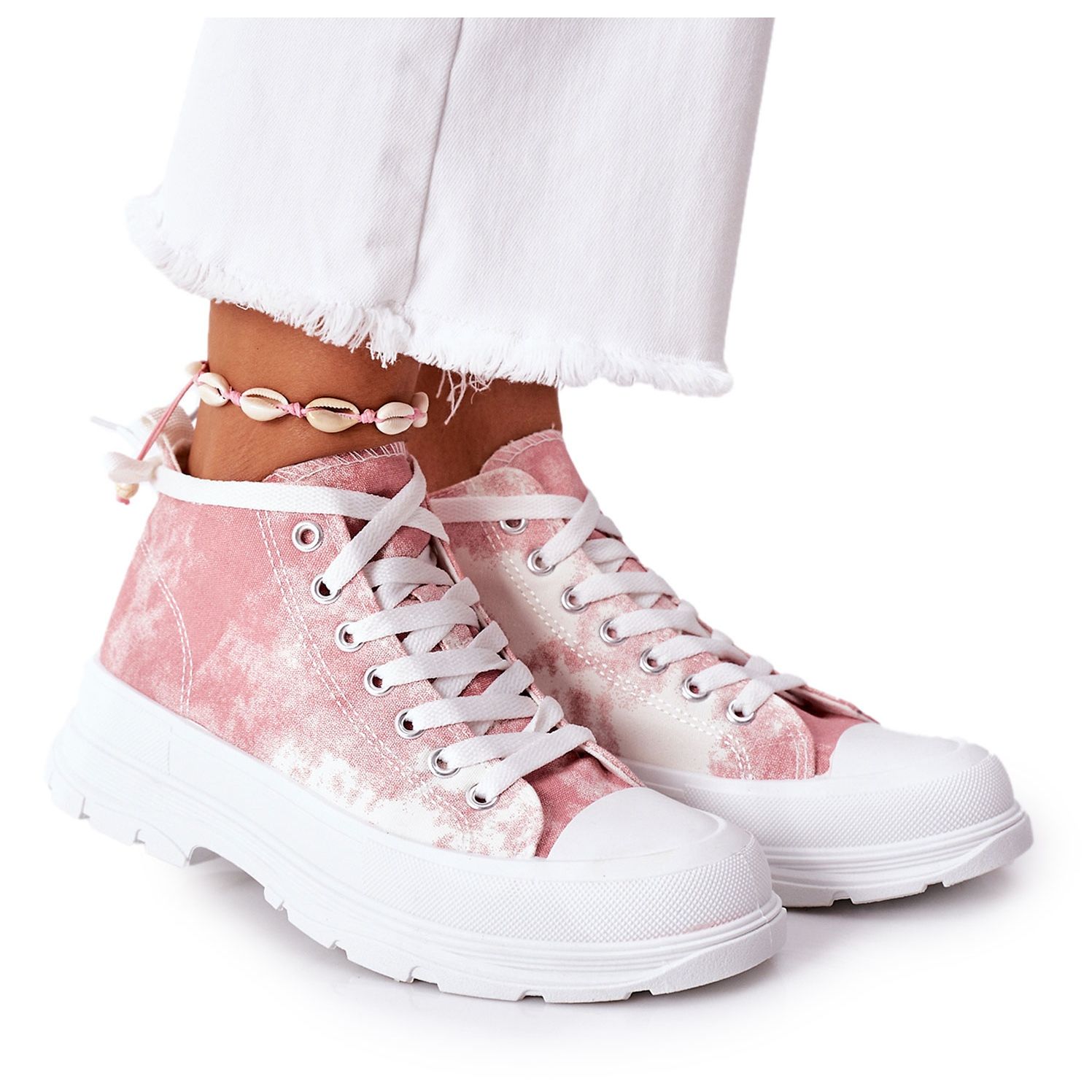 FJ1 FJ1 Vysoké růžové tenisky na velké podrážce s efektem Tie-Dye Trissy bílý růžový