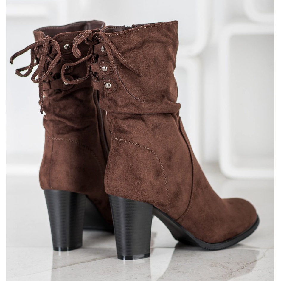 Podrobnosti: J. Star Vysoké, tmavě hnědé kozačky hnědý