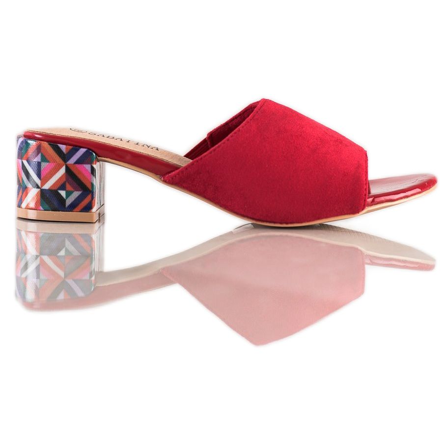 Podrobnosti: Sabatina Vzorované pantofle na podpatku červené