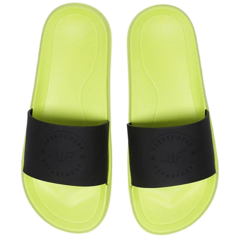 Produkt Flip-Flops 4F M079 4FJSS23FFLIM079 jsou plážové boty určené pro chlapce. Jsou vybaveny tvarovaným vnitřkem, který zvyšuje komfort nošení. Mají široký pásek, který zajišťuje stabilitu. Podrážka je vyrobena z pěny, která poskytuje noze lehkost a nášlap zlepšuje přilnavost, což je nesmírně důležité při hraní u bazénu nebo na pláži. Žabky jsou černé a zelené.